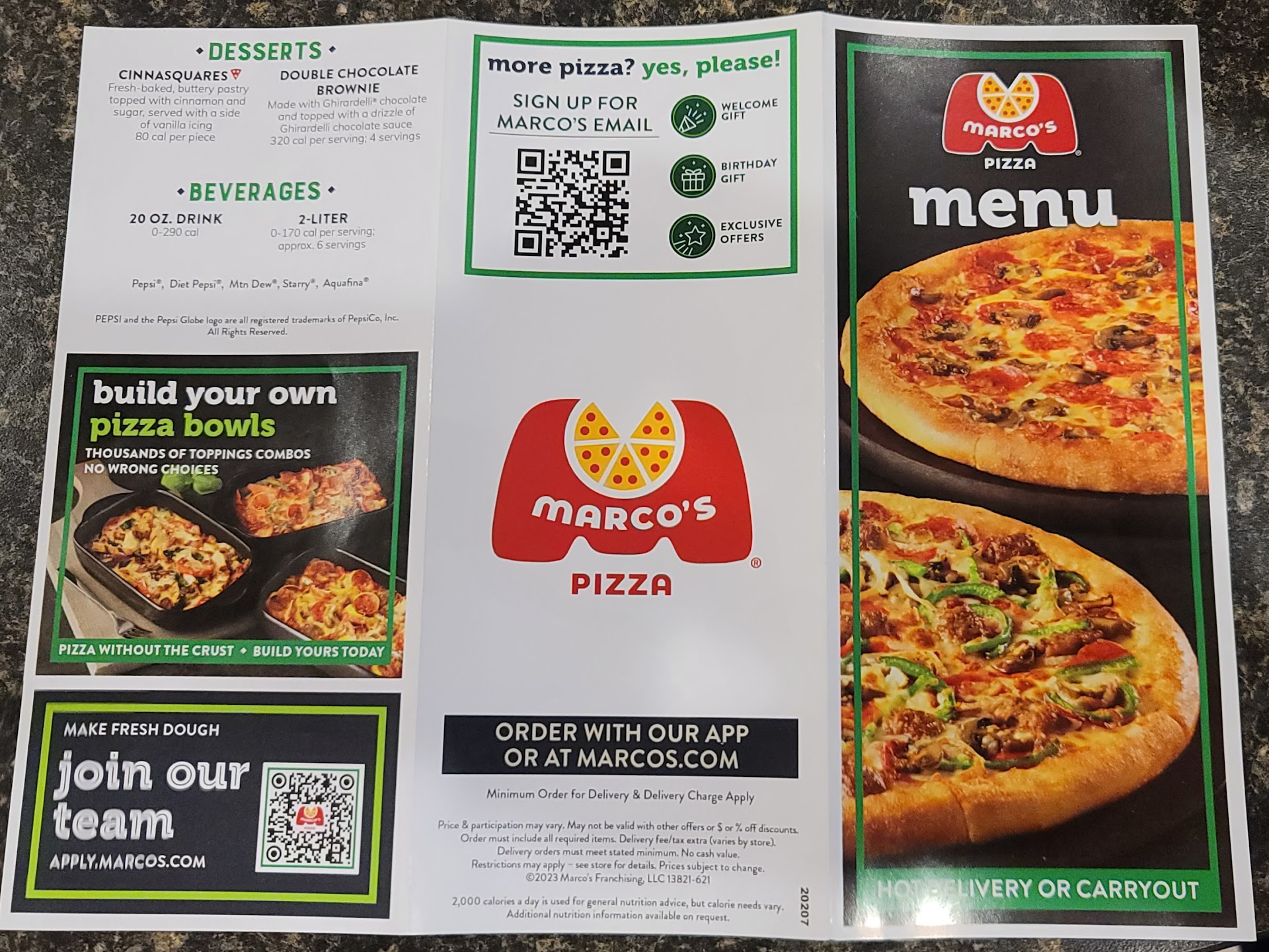 Read moreWhen I first had Marcos I was totally in love!! It was the best pizza ever the location I visited for the first time was in Duluth Ga. Moved to College Station and was so excited that they had their footprint here so I started ordering faithfully from delivery to dine in but slowly but surly the quality changed. I order from them on a Tuesday 6/9 for delivery the girl whom took my order marked it wrong for carry out instead of delivery. I called after 1 hours and 15min to ask where was my pizza? They said oh we marked it for carry out, I told her I specifically said delivery she goes ok let me get my manager. Places me on hold for almost 10min to come back and say the manager wasn’t there but they will send it out I asked will the pizza be a new one and wings she said yes, these people delivered us a pizza that sat out for over an hour on the counter!! The pizza wasn’t even hot I live 2 miles away no way it should have arrived cold. Not only that but we ended up getting sick. When I called to express my concern and how unhappy I was about this Jennifer the “manager” tries to cover it up and lie and say she was there that day and took my order and she know the food didn’t arrive cold!! What a joke!! I told her your lying I didn’t speak with you and either way someone’s lying and playing games. This locations quality has went down tremendously especially within the last 8 months and not too sure why but they rubbed me the wrong way to the point where I’m done the apology isn’t acceptable because the manager started off by lying and liars don’t deserve my...