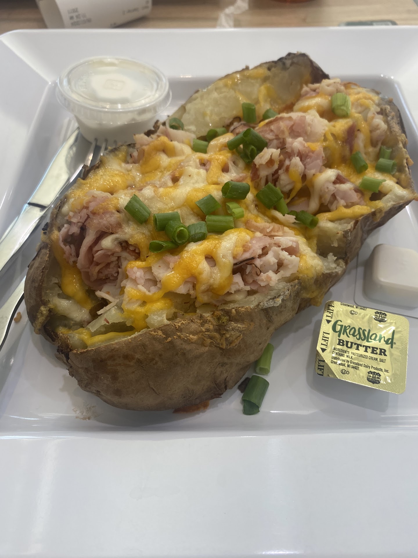 I ordered the get 2 (still haven’t eaten part of my meal - the Black Angus club). I ate the other part which was the spud max. Overall it was good but wish I had a little salt for the potato (which was not in the bag). Really I’d give the food a 4.5 the quality was good and...