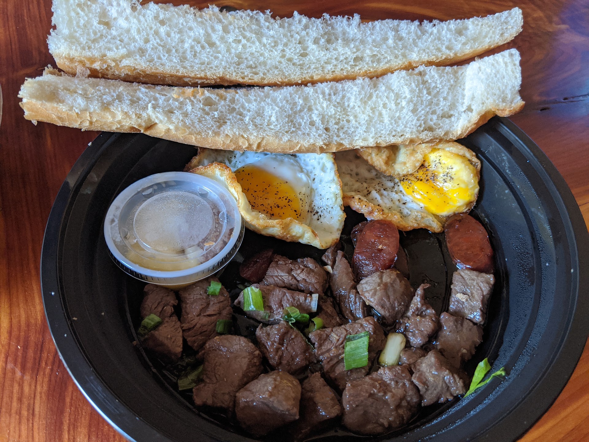 We ordered the pho with fatty brisket and round eye steak. Very flavorful! They pack the extra sauces and veggies neatly and separately to deliver. It was very easy to put together and get some nourishing soup in. Also had the fried rice, which is a Vietnamese twist on the Chinese fried rice you may be used too. Ingredients tasted fresh and not too salty. My husband ate his baos super quick, so I'm going to assume those were also delicious as usual, lol. My favorite part was the bahnmi: y'all, it was big enough to be two separate meals. Good balance of ingredients. Nice flavor in the meat 👌 Delicious!