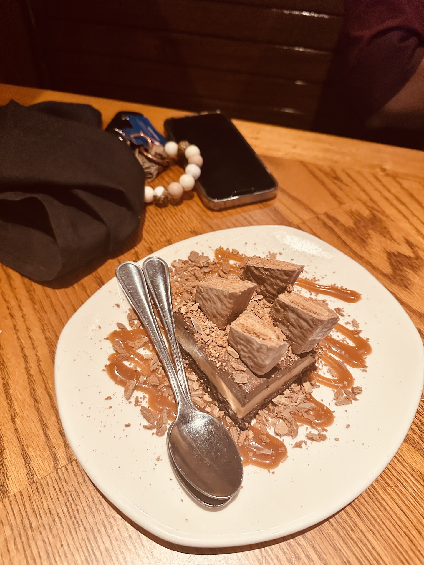 To be honest, my food choices were pretty average this time around, so I didn’t feel the need to comment on everything. The wings were my fallback option, and they hit the spot. A surprise highlight, though, was the dessert! It was a delightful whipped chocolate treat topped with caramel and goodies. Such a sweet way to end the meal!