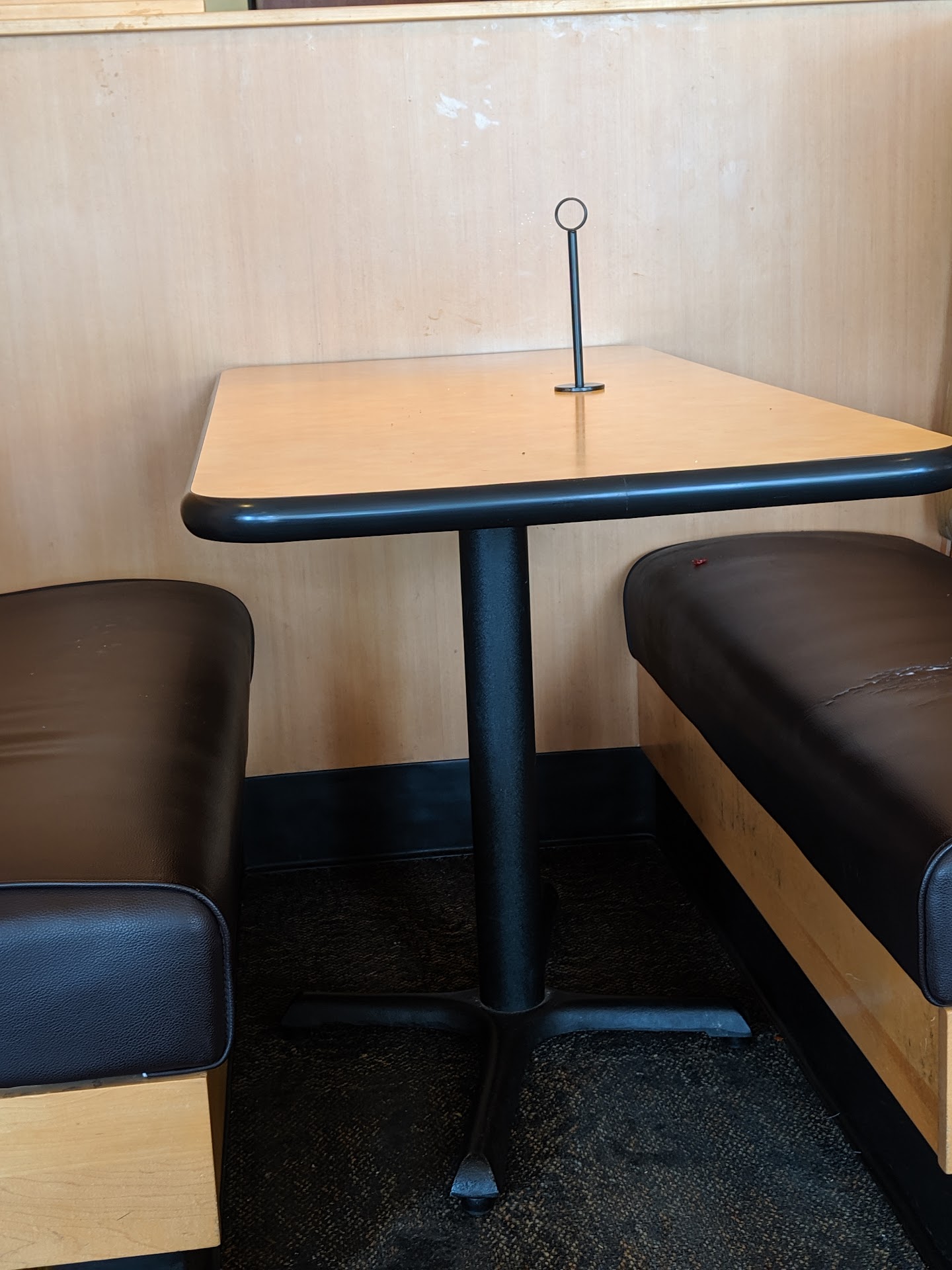 I sat near the order pickup area because there was a booth with an outlet. The staff were grody. Their discussions were inappropriate. A young man wearing a MARVEL ball cap was just awful. He dropped the F-bomb several times, said Sh*t many times in general convo with his coworkers, and this whole discussion about how their soups look like vomit so he won't eat them was just so inappropriate. None of them seemed to care that he was using cuss words, it was just normal. I could not tell who were the leaders/managers. No one was really directing anyone.