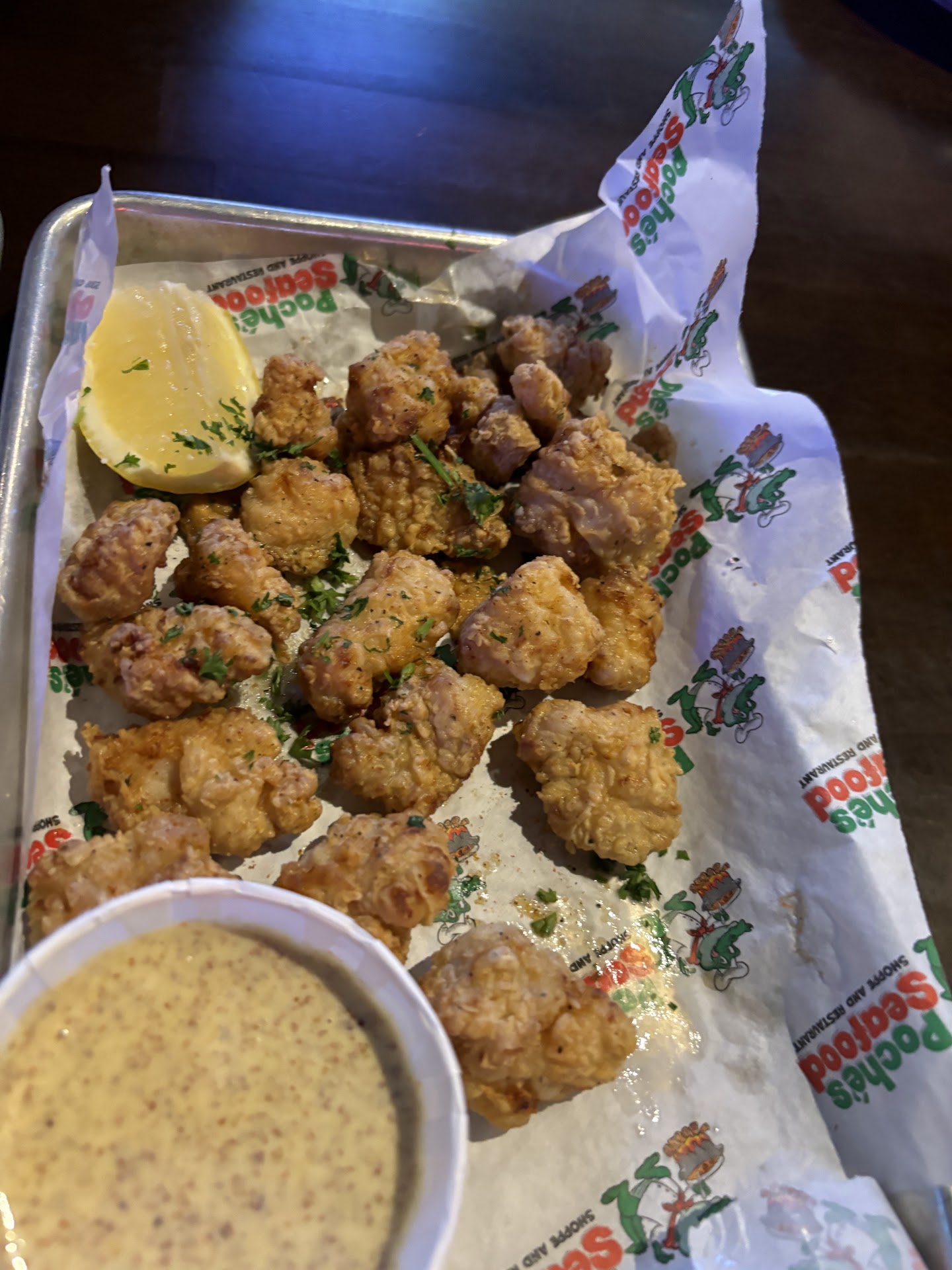 Read moreCame in during lunch and we were seated immediately as they had just opened. Waitress was friendly and informative. We tried the cajun chicken stuffed Jalapeños for our starter. They were really good, and good portions along with a nice homemade ranch for dipping. Since it was our first time we got the full sized Bayou Platter to a try a variety of items at once. Pros- large size, the fried shrimp were large and juicy unlike some places you get small shriveled fried shrimp. The stuffed crab was also tasty and filled to the top. The oysters were fried well and good size as well. On to the bad..... the catfish..although they are not skimpy on the portions, it lacked flavor and the batter was too mealy.. needed flour to bind and fry better. I had to douce it in hot sauce to be able to eat some of it. The hushpuppies were also a disappointment as they were super dry but somehow oily at the same time. I squeezed one between my fingers and it literally crumbled and left my fingers coveted in oil drops. The fries although again they did not skimp on the portion, were super soggy and oily. They definitely should have been fried longer or double fried and drained well. It didn't help that all the other fried food were on top of them. The worst thing to both my husband and I was the cup of chicken gumbo it also came with. It was dark dark and super thick and I mean thicccckkkkkkK broth. It tasted super salty and burned and just not a good flavor overall. Maybe some people like their gumbo this consistency but it was not for us. We've had plenty of gumbo in Louisiana and this one is our all time least favorite gumbo. Nevertheless, there are other items we want to come back to try and give this place another shot. Hopefully they fix some of their items that others have...