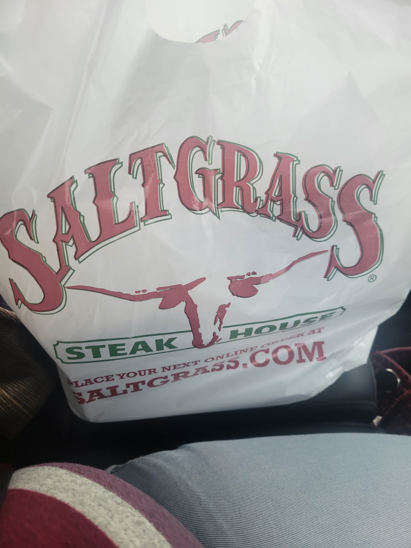 Ā Ā Ā Read moreWas not impressed that they no longer carry seafood fondue, we were told that only the Houston locations have it now. Food was ok typical service restaurant was it busy, but yet still had to ask several times for each item we requested ex steak sauce to go boxes etc. then as we are receiving our togo boxes one of the servers knock over the entire pitcher of ice cold water totally in my lap. Like I am soaked front to back looks like I just jumped in a pool. It shatters the glass and as they attempt to clean it up Iām stuck inside the booth literally sitting in freezing cold ice water. When they are finished with there attempt of cleaning it up still water and ice chips all over the floor and puddles as they remove our plates I finally am able to get out of the booth and I am compleltly drenched I mean soaked. At this point our server hands my husband the check which is $85 with a genorous tip and I call for a manager I said can I at least get some napkins or towels to put in my truck seats so that I donāt ruin the leather getting home? She said oh yes sorry about that. Didnāt ever once offer to comp my meal a piece of cheesecake nothing just Iām sorry. Seriously I am soaked front to back from the waist down freezing trying to keep from slipping in heels as I leave and I bet Iām sorry for pouring a pitcher of ice cold water in your lap. If that is the east customer Service they can offer I will return to the Houston locations because itās worth the drive to have better service than that, I wonāt return to salt grass in College Station, nor will I recommend it to anyone. Gringos is next door should have stepped it up a...