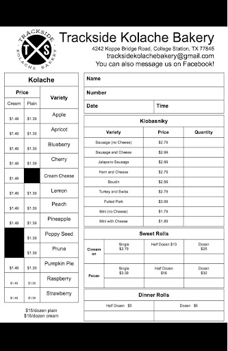 So first off, where I’m from, we come nowhere near to how you pronounce it down here…what’s with the long eeeee sound? But no matter how you deliver it, Trackside delivers the goods! Now my upbringing had kolach made on a baking sheet, so more middle pieces with end to edge filling, though the adults always claimed that the edges are better, but I digress. Johanne, one of the owners confessed no Czech heritage, but that her love for baking, and trial and error, led her to what she now serves, and let me tell you, she succeeded. The dough is light, fluffy, and just the right sweetness. This is the stuff of clouds! And the fillings, OMG, I mean even prune, and of course makova napln! Add to all this, it smells like my grandmas kitchen! So make sure you visit…oh and come early, as they tend...