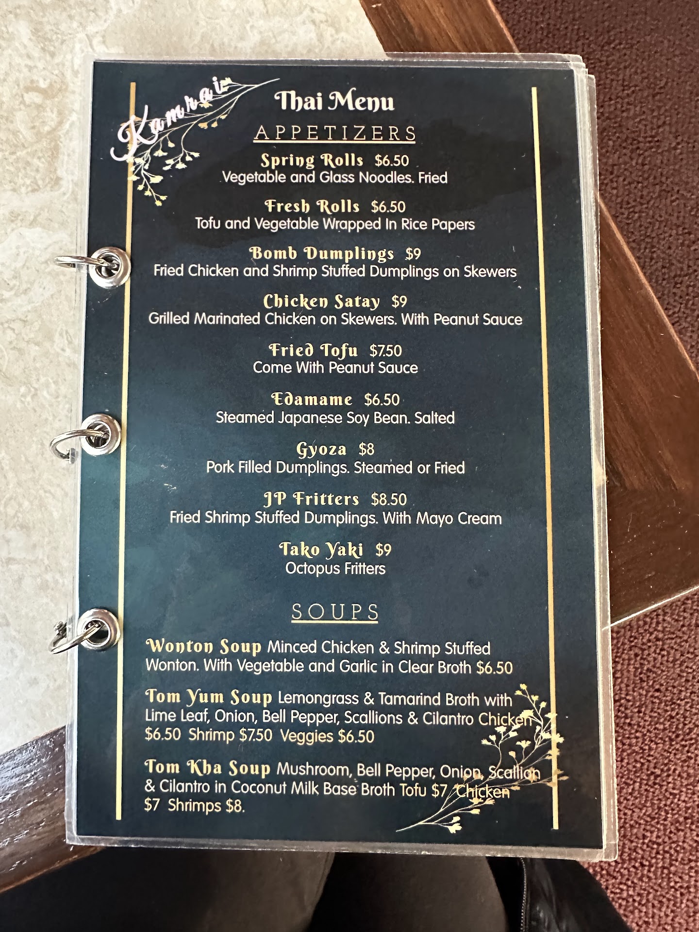 Read moreI have lived in the State College area for a decade now. I was told about Kamrai 8 years ago and it never worked out that I gotten the chance to dine there. This past Saturday I finally had the chance to eat there and I now I wish I would have made it a point to have eaten there years ago. We arrived a little after they opened and were the second couple to be seated. We were sat in the section which once was the porch of this beautiful old home. AlthoughI found it hard to read the menu in the dim light, I loved the atmosphere with the piano music playing in the background. Everyone that worked there was very friendly and our server was on top of it all for us. To start it off my wife and I had Sushi. My wife had the Dragon Roll and I decided on the Sex on The Moon Roll. While they both were delicious I enjoyed the Dragon Roll more. For the entree my wife had the Pad Thai and I had the Spicy Basil Yaki Udon. Now I didnt try the Pad Thai but my wife loved it. I must say that the Spicy Basil Yaki Udon was amazing. I got it with a medium heat and it was top notch. I generally like to try different foods so that I know I am not missing anything but when I go back Im thinking Ill have this again. We had a wonderful time on a little date during the Christmas season. Give this place a try. Just watch out for the days and times they are open. they are opene a limited...