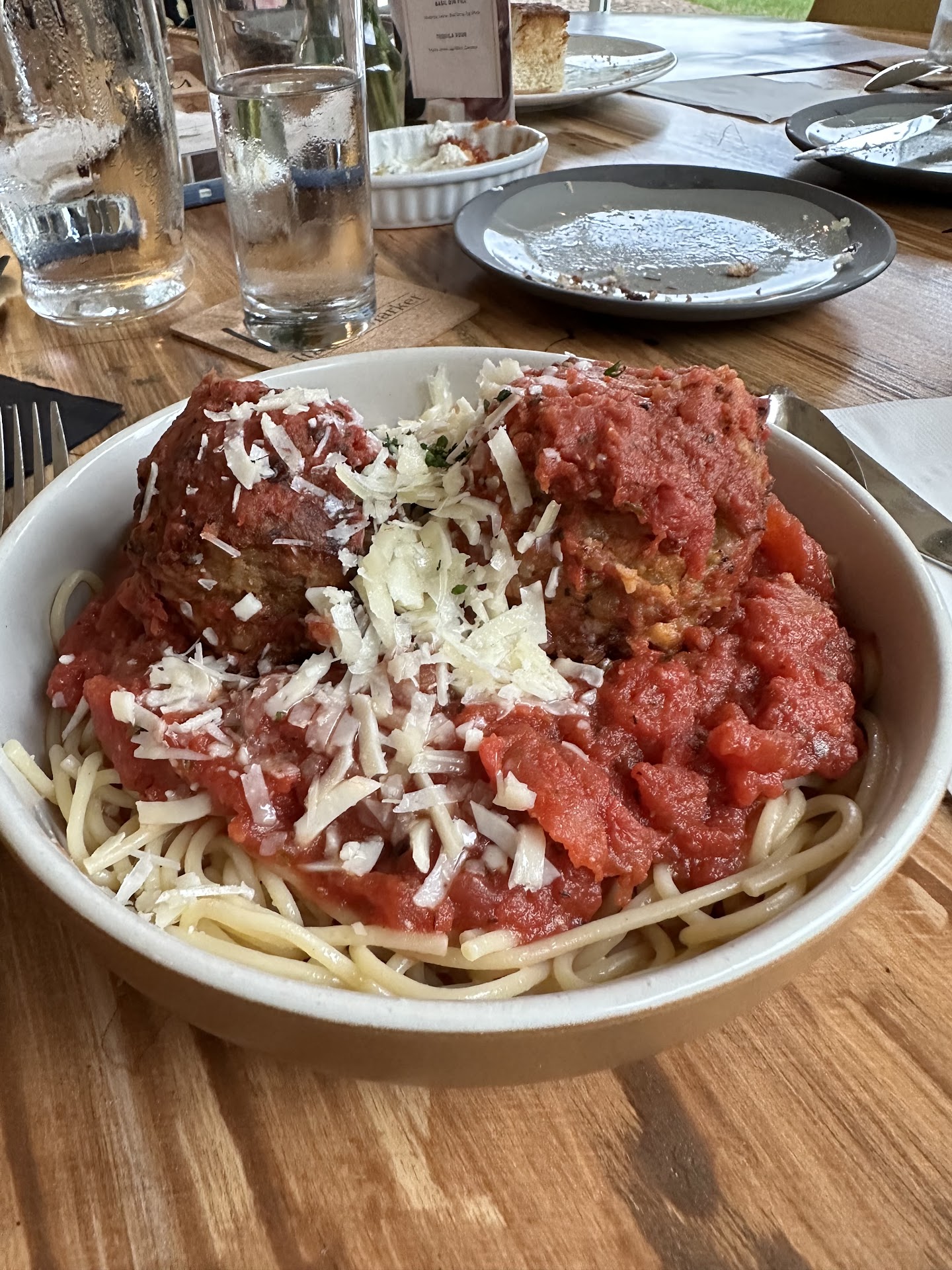 I could forgive the location given the renovations, if the food was stellar. Sadly, the food was lacking too. The antipasto was fine. My wife and daughter had the spaghetti and meatballs and the sauce was overly sweet. I had the gnocchi and grilled chicken. It was ok at best? Not sure who thought it was a good idea to have the gnocchi swimming in a bowl of cheese sauce? It was way too heavy.