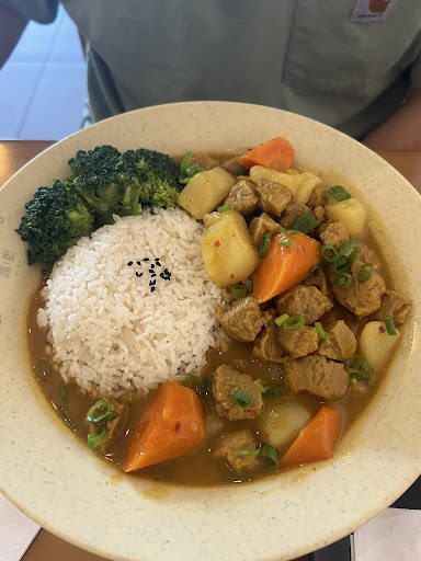 We tried the food as well, and it was ok. We aren’t vegetarian, so maybe this is good for vegetarian restaurant food, but we weren’t impressed, unfortunately. We got the Japanese Curry with vegan chicken or something, and the Tofu stir fried noodles. The Curry needed a little extra flavor, so we added the sauce from our dumpling entree and salt, which was a bit better. Still needed extra oomph, and so did the noodles, so I would recommend a couple side sauces? Something spicy and maybe something sweet and sour? The noodles were evenly coated in the stir fry sauce, but I think they were just spaghetti noodles? That was disappointing, honestly. The portions were HUGE, however. The noodles would feed a family of 4, I’m not exaggerating. They could honestly do smaller portions for the noodles at least, it was just too much and barely fit into my takeout container. Overall the food is pretty good and definitely healthy. The milder flavors would be great for kids or folks who don’t like too much spice, and it’s definitely a better option for a healthier meal.
