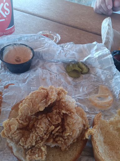 So! What an experience, we grabbed lunch on our way to the new Little Debbie park about a mile away. We got to the park about 3 minutes later and while I opened my sandwich wrapper I could smell the stale bread. No matter how good the chicken inside is you just can't eat a sandwich with stale bread so I took a bite of just the chicken patty and realized it was cold and bendy, not crispy anymore and I got to sit there and watch my family eat, my husband ate his burger patty and left the bread out and I ate my fries. I NEVER, EVER, NEVER bring food for a refund but I was so upset because in the drive thru I asked the girl if they had any spicy sauce and she said no, only come-back sauce but my husband ran in for BBQ and noticed they had buffalo sauce! What! So 20 minutes later we left the park and went for a refund. Entire sandwich minus a bit from the patty...my husband came back out and had to find the receipt. How embarrassing for them. They said they can't find where they sold us the sandwich in their transactions - they were so slow at the time 🤣 he got the receipt and waited longer for a refund. It wasn't the $5. It's the point that they are not selling fresh goods and they are aware. Also you can see their supply racks and supply areas, if you look and pay attention you see so much crusty dried up ketchup and sauces on the racks and crumbs and start to notice the filth. The only other time I went to this location was the second day they opened awhile back and it was great. What a...
