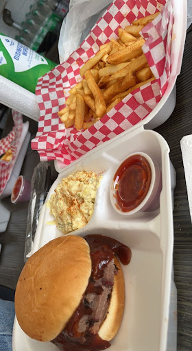Read moreOn a dad/daughter date, stopped on a motorcycle ride and ate here. I got the brisket plate and the daughter got the brisket sammich. (Yup, spelled right! LOL) The portions were a healthy size! The brisket had great flavor and with just a bit of BBQ sauce, it took it to the next level! The fries were hot and freshly made. Crispy on the outside, steamy and yummy inside! Really liked the seasoning they added to them. Both the slaw and potato salad could have used a bit more pop on the seasoning. It’s a great little place. The two working were so helpful and friendly! The price was extremely reasonable for some good BBQ. Loved the smoker out front and the delicious smells from it! Favorite part was the cashier taking out a fly with a salt-gun! Cracked us up. (Daisy duke shorts, cowboy boots and a salt-gun up on her shoulder! ) I’ll be eating here again because it’s the best BBQ...