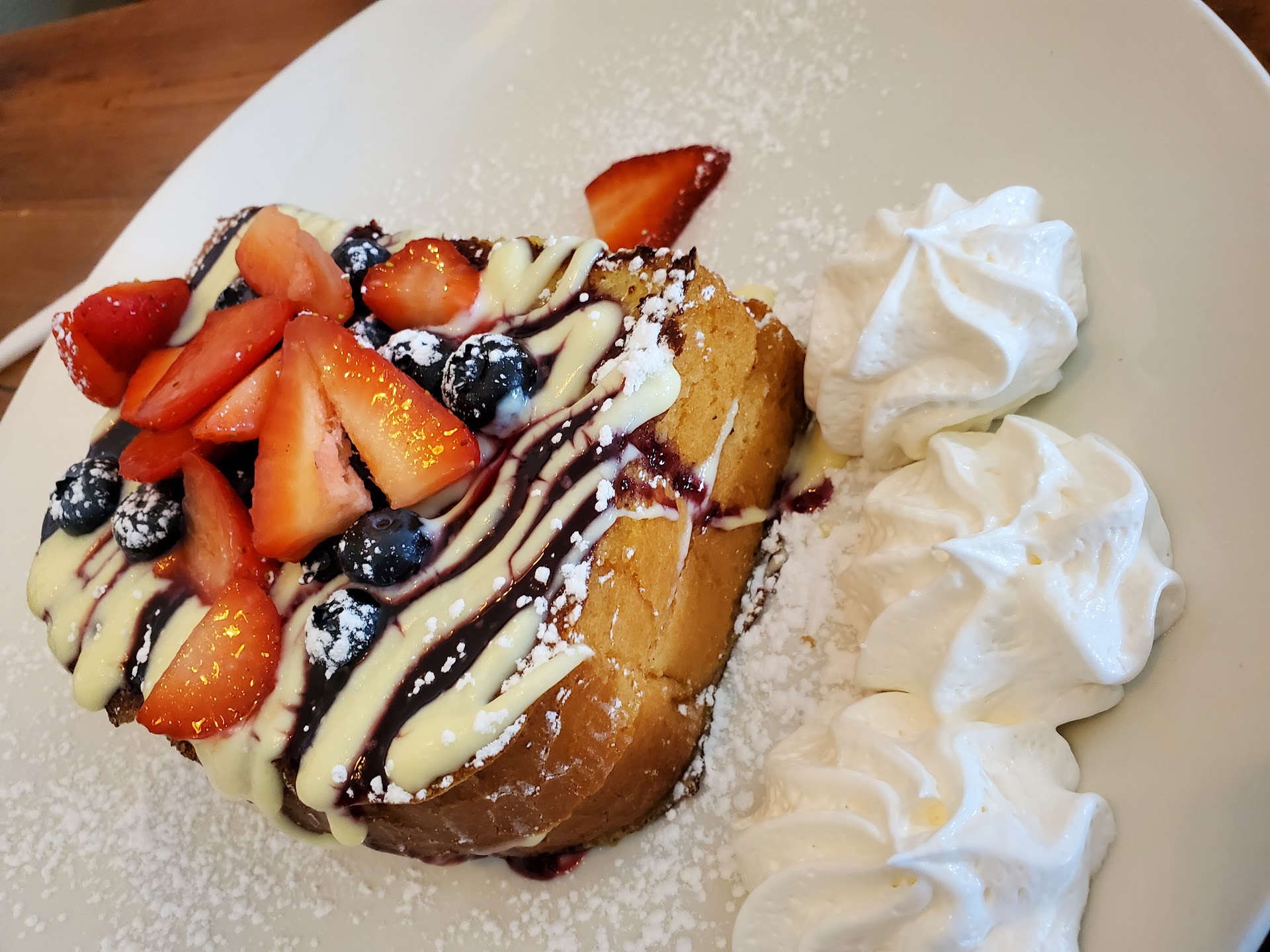 We've ordered from this place 4 times within the past 6 weeks or so and the food is always really good. The customer service is always great as well. However, the past two times I've gone, there's been an issue when ordering the Brioche Stuffed French Toast, which I've gotten all 4 times. The menu description says "Two pieces, filled and topped with homemade cream fraiche, topped with fresh strawberries or blueberries and a blackberry sauce." The first two times, no issues. However, the third & fourth times, there is an extra charge for fruit! I spoke with a woman I'm assuming is the manager due to the extra charge. She repeatedly stated to me that the toast does not include fresh fruit. I showed her the menu which states fruit right in the description. She told me that means sauce, not fruit. What kind of stuffed french toast doesn't come with fruit? What is it stuffed with then? Answer: "sauce, ma'am." They need to change the description on the menu to reflect this or change the price to include the price with fruit. This was not an issue the first two times and now they must've changed it without updating the menus. I don't like being quoted one price online and another in the store then being treated like I'm the issue by wanting the store to honor the price stated both on their menu and in my emailed receipt. I have a really big issue with things costing more than the stated price, the menu needs to reflect that there is an extra charge for fruit or it needs to take fruit out of the description or it needs to change the price of the french toast to how much it costs with fruit. We will not be back for a...
