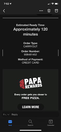 Very disappointed with the response and lack of follow-up from this Papa...