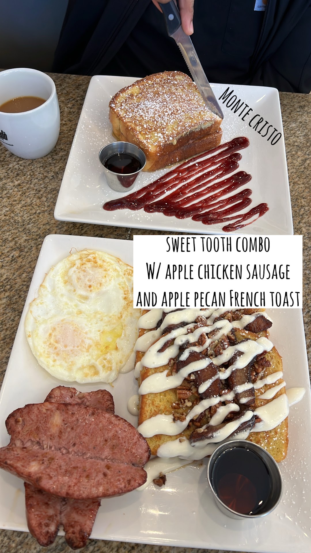Read moreFOOD INSTAGRAM: @northtx.gemz •••• 🍒 WHAT THEY’RE KNOWN FOR: not sure! I just passed by while in the area. I would say LARGE portions. 🍒 THE VIBE: cozy and basic brunch place! 🍒 PRICE: ~$35 I can’t remember 🍒 WOULD I COME BACK? Yes. •••• Overall Rating: 9/10 A solid new brunch place to add to your list! I love a good brunch and @townhousebrunch did not disappoint. I did expect the monte cristo to be smaller and with crispier bread but regardless the pairing with the sweet blackberry sauce made it very unique. My sweet combo was HUGE I didn’t even finish the French toast bc I had to help my boyfriend with his sandwich. They use the same type of thick bread. The bread is very thick but very yummy especially if you love your carbs. the apple chicken sausage was great and eggs were cooked perfectly. the server was nice. We loved this place! Would...