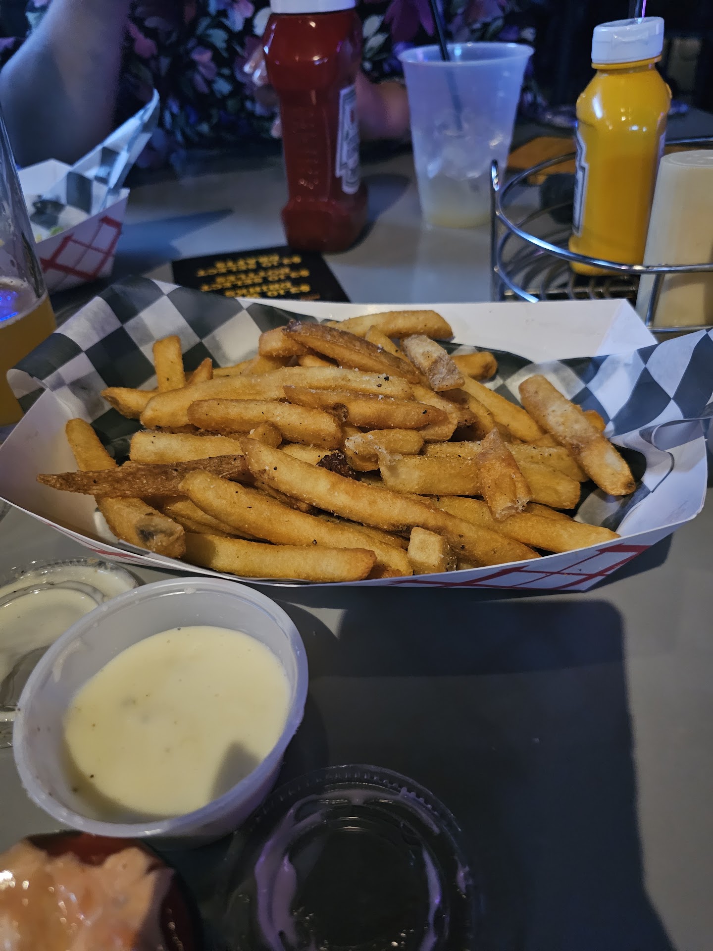 First things first, it took us almost 10 minutes even to get a menu. Then, it took almost an hour to get our food. It also wasn’t packed by any means. After that lengthy of a wait, the least we hoped for was the food to be at least semi warm and the order to be correct. It wasn’t in either case. My buddy’s fiancée got the wrong order. She ordered the cheese quesadilla and the server brought out the chicken one instead. It wasn’t a big deal, and wouldn’t have been, however as she was turning to tell the server it was fine, she’d take the chicken one instead, the server yanked it off the table and was gone. When she finally got her order, to say they went light on the cheese would be putting it mildly. I’ll allow you to see for yourself (photo attached). Don’t get me wrong, I don’t think any of us were expecting to have the thing overloaded with cheese, but for almost 10 bucks, you’d expect a tad more than you see at the bottom of the bag of cheese you are about ready to throw out because you think it’s empty. As for the orders that were right, the fries and duck fry fries were burnt to a crisp and to the point where they were inedible on the outside, and when one of us attempted to take a bite, it was barely above room temp. Same goes for the rest of our food, which was tepid warm and borderline cold at best. Waiting an hour for food is one thing, getting items that are both burnt and cold is inexcusable. The receipt was a fair bit humorous in terms of what we were listed as in terms of who we were as customers, but it was quite a bit unprofessional as well.