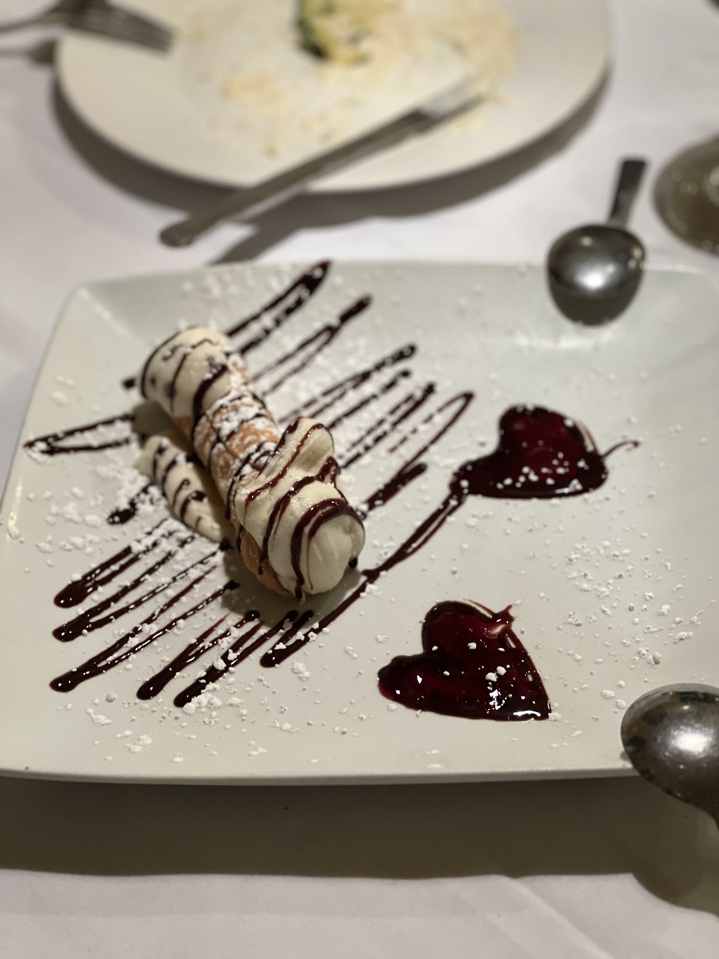 Read moreMy husband made a reservation here for our 24th anniversary. We arrived about 30 minutes early which posed a little staff confusion but we were accommodated. Once seated for an intimate anniversary dinner a large party was placed next to us with several young children. I requested to be moved and we were pleasantly accommodated again. I have wanted to try Cafe Piazza for quite a while and am happy to say it did not disappoint. I ordered the salmon, mashed potatoes, caesar salad; our appetizer was the toasted ravioli and my husband ordered the spinach and cheese ravioli with alfredo sauce. My dinner was tasty and without complaint-salmon was tender, not dry, mashed potatoes were tasty and smooth. I did not get asparagus as I do not care for it. My salad was crisp and with not too much dressing. The toasted ravioli appetizer was crisp, hot when served and the red sauce delicious. The wine selection for size restaurant was fair. The Cabernet Sauvignon was delicious and complementary to our meal. We were also provided with a celebration dessert on the house; the cannoli cream pastry was like what I had eaten in Italy and was delicious. The wait staff were professional, though at times a little soft spoken being a little difficult to hear. The restaurant was full, comfortable seating, pleasant atmosphere. I would recommend to others to...