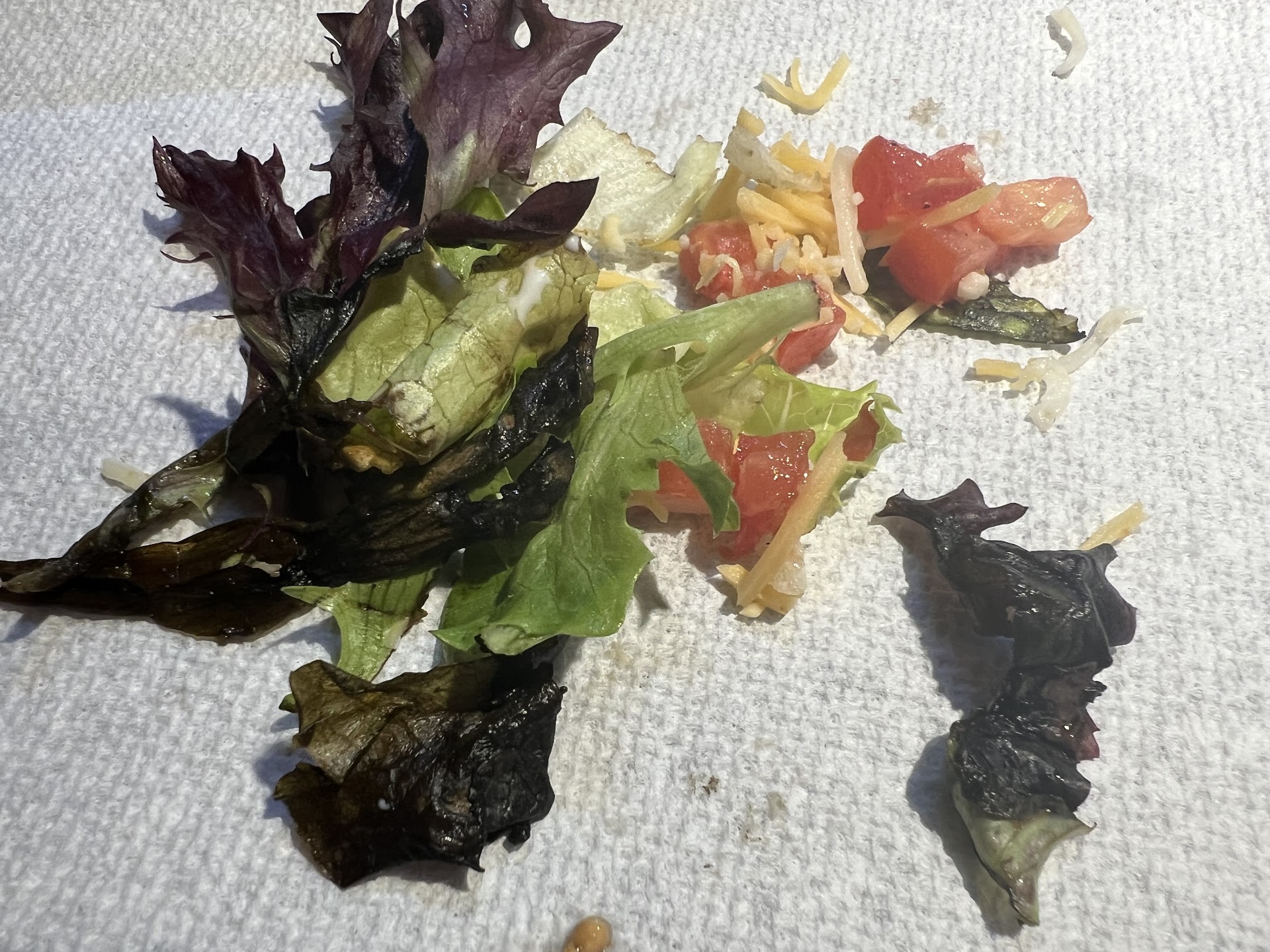 we ordered dinner..( take out) for our family when arriving home some of our items were missing..( okay it happens) my husband went back for them.. yet another 15 waiting period⦠i began pulling the meals together⦠the first salad was rotten⦠i called my husband telling him to get a replacement salad⦠the next salad we ordered was also rotten i called chilies to talk with the manager⦠after i waited 20 minutes..& was hung up on 3 times⦠finally reached someone ( name withheld ) who did replace the meal⦠(he was very understanding.. ) the very next day ⦠second meal was prepared better..cheeseburgers and chicken sandwiches were okay but over salty and i like salt..the third replacement salad was also rotten⦠i photographed the original salads on the counter top again itās nasty⦠the white paper towel is the replacement mealās saladā¦. they seriously need to keep an eye on their produceā¦. we were disappointed ā¹ļø ⦠please know that we received half salads .. that was approximately about a cup of lettuce.. and half of the lettuce was rottenā¦.