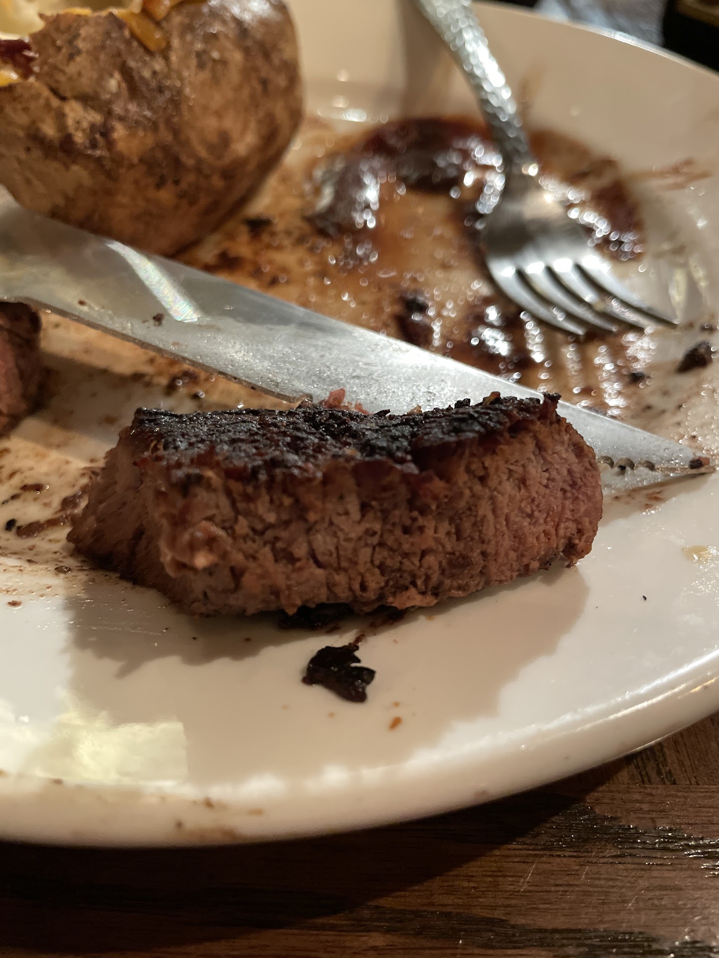 Customer service sucks, the last time I was there it was awesome so was the service. Usually it’s my favorite place to go to but last night was horrible. We called ahead of time to reserve a booth and when we got there the girl at the door was acting like she didn’t know what to do and was like let me get who you talked too. The girl that we talked to didn’t really say much but it’ll be a minute we trying to see if someone can pick up an extra table. Time going by about 10 minutes I asked again she said not that long then but proceed to say would yall like the high table I said no because we explained that we had 2 small girls that wouldn’t be able to sit that high up without falling. So, she then said oh okay I understand. Her the girl that was there and 2 other’s began to talk as if we wasn’t waiting when they had booths available. I then got up and asked agin and she was like we were gonna give yall a booth but it only seat 4, I then say they are little girls so it’s enough room. Literally 30 go 40 mins for what was already available. I ordered a Parmesan crusted ribeye well done with loaded mash and broccoli. It came out with loaded baked potato a rare steak just red and bloody and broccoli. The waitress knew it wasn’t done before she brought it out. So she said I’ll take it back it won’t take long. 20 mins nothing nor did she proceed to say anything just like I wasn’t waiting. About 35 40 mins later here she come with my plate no apologies the steak medium well too pink for me, I stop her to tell her and she said do you want me to take it off you ticket and I’m like yeah. So when she seeing how the tickets gonna be I get a ticket for the drink in which I didn’t even drink because I didn’t have anything to wash down. I get her to come back and ask so I’m gonna be charged 5 bucks for a drink and my food came out twice not done are you serious. Worse night ever. They need to train them better at having customer service and waitressing. Had I been the waitress it would’ve been totally different. She wasn’t even checking back nor were there enough napkins for the table. Long post I know… but went to eat and...