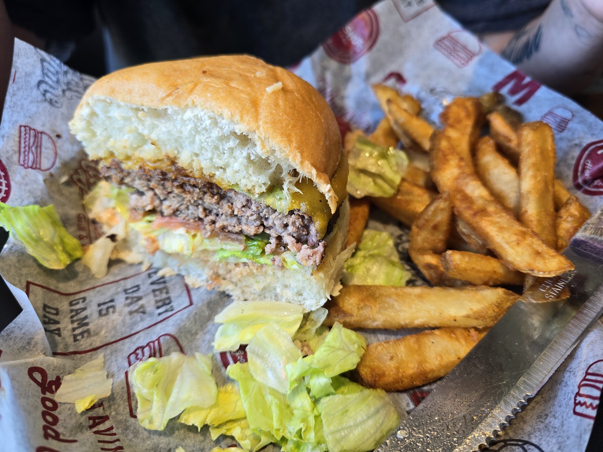 Ā Ā Ā Read moreWell to start - had to wait for the hostess and 2 of the waitstaff to finish their funny story before we could put our name down to wait. Was told a 35min wait but it was 55 minutes to be sat down. Total time was 2.5 hours for dinner. Secondly - out of diet coke... like what? Thirdly - My mom is allergic to Gluten, upcharges .50c for gluten free bun, not a big deal, but she could not have the fries either and the waiter offered her a house salad as a substitute and then charged us another 2.50 for it, wouldnt be an issue if it was mentioned beforehand - then they brought out a turkey burger when she asked for a turkey club and neglected to change it on the bill and charged us 1.50 more for the burger. Food was mediocre - burgers were more than well done, moreso a congratulations if you...