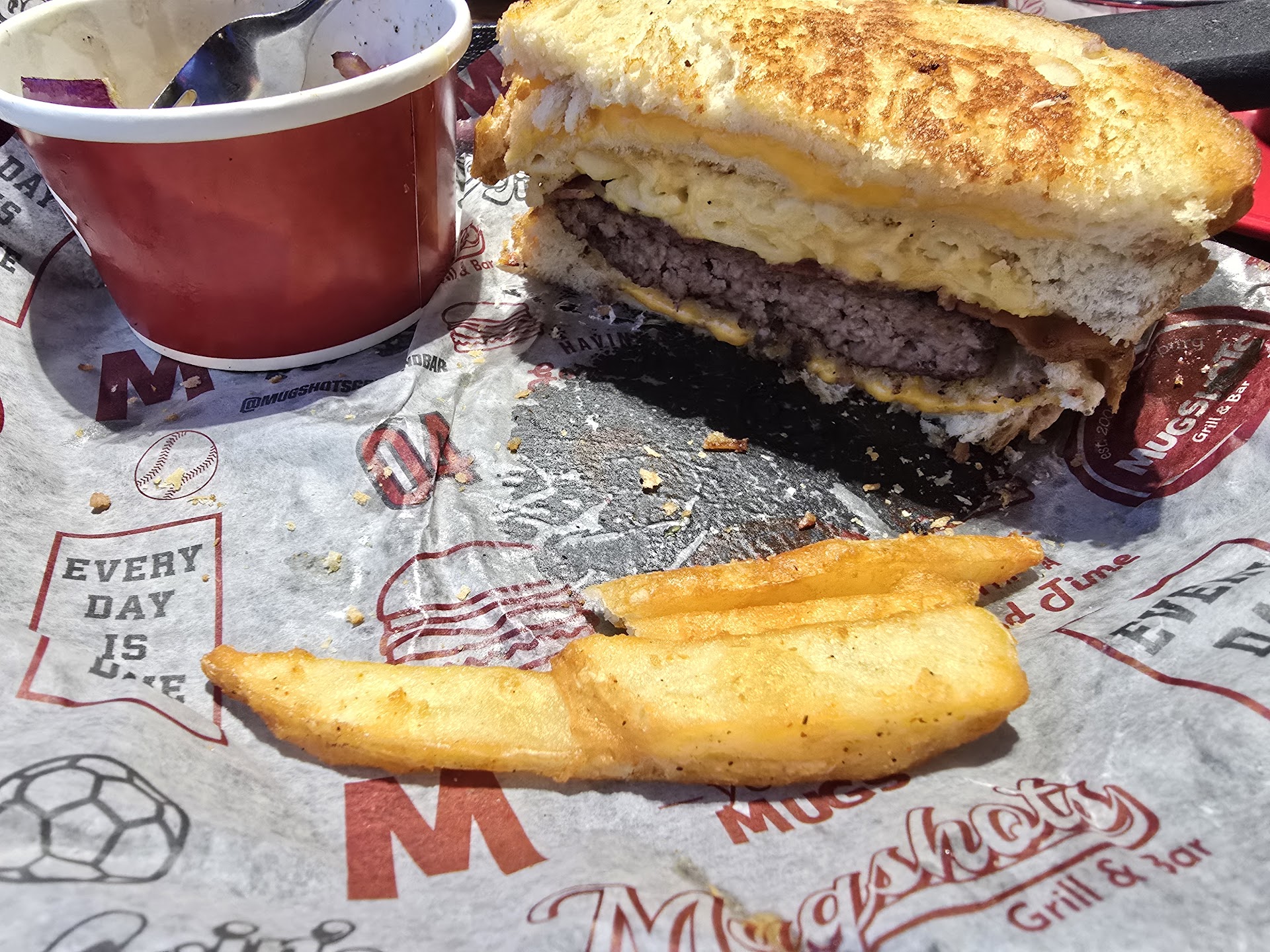 The ciabatta bun is not exactly a ciabatta bun, it's more like some thick fluffy white bread that tastes sweet.