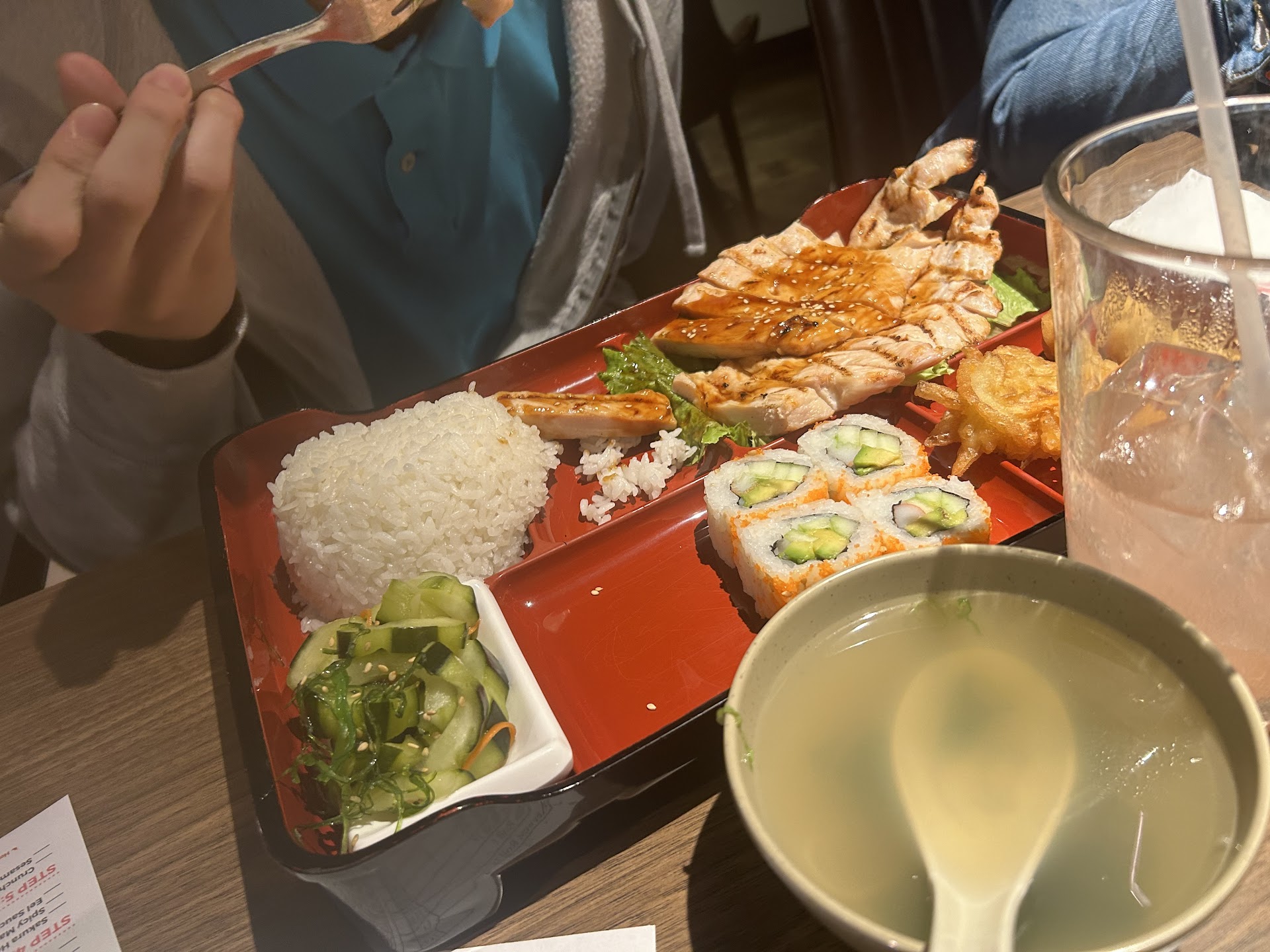 Read moreTried on August 2nd, was not impressed. The food was not that good from the salad to the sushi. I was really dissapointed. The teriyaki chicken and beef were terrible. Chicken low quality and cooked to a rubber consistency with sauce DRENCHED on top. It was not edible. Beef also DRENCHED with sauce and full of fat and gristle. The ginger dressing on salad was sweet, which was unappetizing and again, the salad was DRENCHED in the bright orange dressing, very unappealing. Wait time to take order or be checked on was too long. We did not get any special sushi, just the 3 combo option, but it was just ok. The rice was not evenly distrubeted and was sparse in several places. Ramen was ok, but was missing fresh green onion and flavor was bland. Check receipt, the system overcharged...