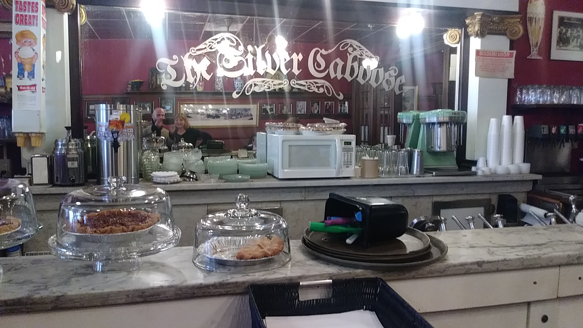 20 minutes after opening on a Friday the place was already full with 6 parties in front of us. We waited about 15 minutes until being seated. I read the reviews before coming. I get it and agree that the food nothing stellar. Don’t get me wrong. It was good. But nothing “wow” about it. I think the reason to go here is for the experience of the town square. We started by walking around the square and visiting the trains which you can go inside. And the charm of the restaurant just adds to the overall experience which is exactly what we wanted. Servers were friendly. Blue plate specials were good. And the pies/cobbler were what we would have expected from a place like this. My daughter enjoyed the corn dogs and ate half my father’s corn beef sandwich which my dad said was pretty good. The cherry limeade was a bit sour for my daughter but she liked it. Ice tea we made 1/2 sweet and 1/2 unsweetened which fit the palate of my wife. I had the Lucy plate which was pretty good. The corn bread plain is a bit dry but smothered it tasted pretty good. The pot roast, turnip greens and congealed salad made from mandarin oranges and pineapples was pretty good too. Again not stellar. But good and spot on for the ambiance which includes a toy train in the room next door and old town feel. Chocolate chess pie was really good, and blackberry cobbler I ate alone because everyone was full (a solid desert). I thought the prices were pretty decent given the area where I imagine rent...