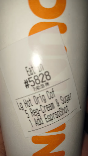 I had an absolutely horrible experience at this dnd, PLEASE READ! So my family and I stopped here in search of a lunch to have on the way to cape may and we had forgotten the keys to the camper and were forced to turn back, so we have already been on the road for about 4 hours and we really needed to get to the camp before midnight because if not weâd be loading up the camper until 3, school is starting soon so we needed a better schedule. Anyway, once we arrived to the dunk-in donuts, we came to a small line and ordered some drinks and food. And the lady asked us repeatedly what food we wanted and did not write a single thing down. Than we waited 15 minutes and only got the drinks! We waited a while longer while people before us got what THEY ordered . And then fifteen minutes later they asked why we were waiting! We told them we never got our food and they asked us what it was again! And than the other lady came and told us to tell her the long list of food AGAIN!!!! And you wont believe this but later they asked for the long list again and they told us they have not started preparing our food yet. Then after 5 minutes we only got half of what we ordered. We did not bother and left angry. Now half our family is on an empty stomach. And the kids wont...