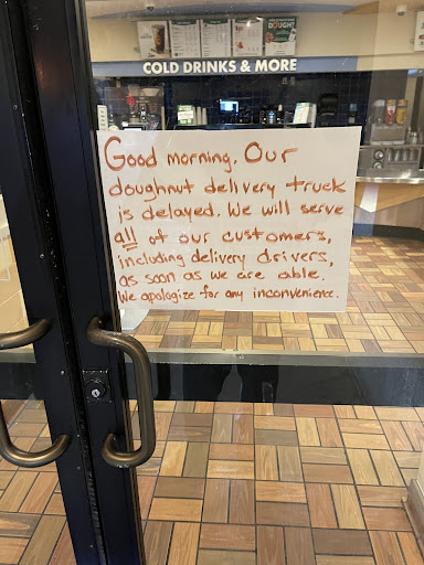 At one point I did try to use the ladies room but I couldn't because it was filled with paper towels that some bonehead shoved in the toilet between opening and 6:30 in the morning. I do want to say I think it's really unfair to expect two people to manage the drive-thru, the donuts, the drinks, the registers, the superior customer service they provided, bathroom maintenance, and everything else by themselves.