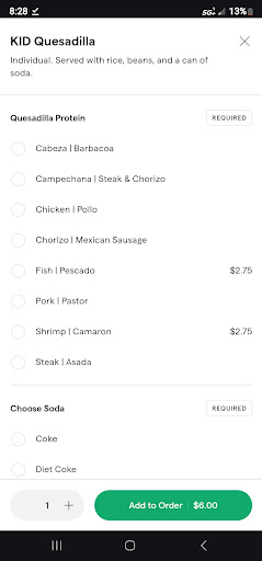 I'm not normally one to leave bad reviews but every time we think "let's give them one more chance," we're reminded of why we shouldn't. They always give me chicken instead of shrimp in my enchiladas even though I pay the extra for shrimp, so this time we decided to order in person instead of online, like maybe hearing specifically what we want would make a difference. Well mine was right this time, but they told us they don't do kids quesadillas even though that's something we order online every single time (and I looked - you're still able to order it online for $6 as you can see in the screenshot i just took and attached. It comes with the smaller quesadilla, rice, beans and a drink) but she told my husband they don't have kids quesadillas. Fine, he didn't want to fight her on it so he ordered two quesadilla combos instead. The combos are literally double the price of a kids quesadilla, but according to the online menu, still include rice, beans and a drunk. Well when we got our food, there was no rice or beans and the combos apparently didn't include drinks, either. So double the price for slightly larger quesadillas that don't include sides or a drink. The total of our meal for two adults and two toddlers was WAY more than eating in person at any Mexican restaurant, and even considerably more than our recent trip to Texas Roadhouse, with lesser quality and way less food. Super disappointing and I'm hoping I don't tell myself "let's give them one more chance" yet again, as...