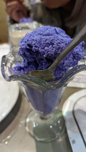 Food is hit or miss. The sides for the prime rib are close to inedible (when in doubt, ask for the rice which is just slightly dry as versus the mashed potatoes which taste overwhelmingly of margarine not butter, the gravy is clumpy and terribly salty, and only get the vegetables if you want to be reminded of elementary school cafeteria food), while the prime rib itself would taste better if not so dry (asked for medium rare, got well done), and could use just a bit more salt and seasonings -- mind you, this is only the 2nd time in my life that I've thought a dish could use more salt. The American-style breakfasts are very, very greasy -- the eggs were drifting around in their own pool of oil, as was each item on the plate. Whereas the daily specials have been consistently good, as are the Filipino & Chinese dishes. Desserts are wonderful; the halo halo is available topped with mango or ube ice cream and is absolutely worth the value, though I do wish there were more ice cream flavors offered, for instance coconut or pandan.