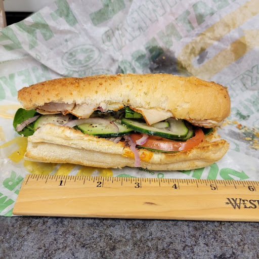 Subway intentionally overcharged me for my combo and the size of the sandwich. I asked for the daily combo, which is $6.99+ tax. Today's deal is for turkey, so I asked for a 6" turkey on Italian Herbs and Cheese. The bread was correct, but the sandwich was not 6". The server made an approximate cut, which means that the other person receiving the other half of the loaf will receive more than 6" (free extra, thanks to my shorted portion). Why doesn't Subway have a ruler on the counter so that everyone can get equal halves of the loaf? It's not like there have not been complaints about the same exact thing in the past.