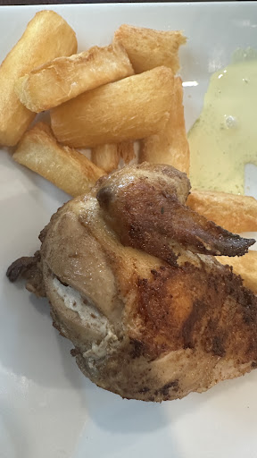 We stayed and ordered Peruvian chicken and yucca. Yucca was perfectly cooked and the chicken was too though I would have liked a bit more flavor.
