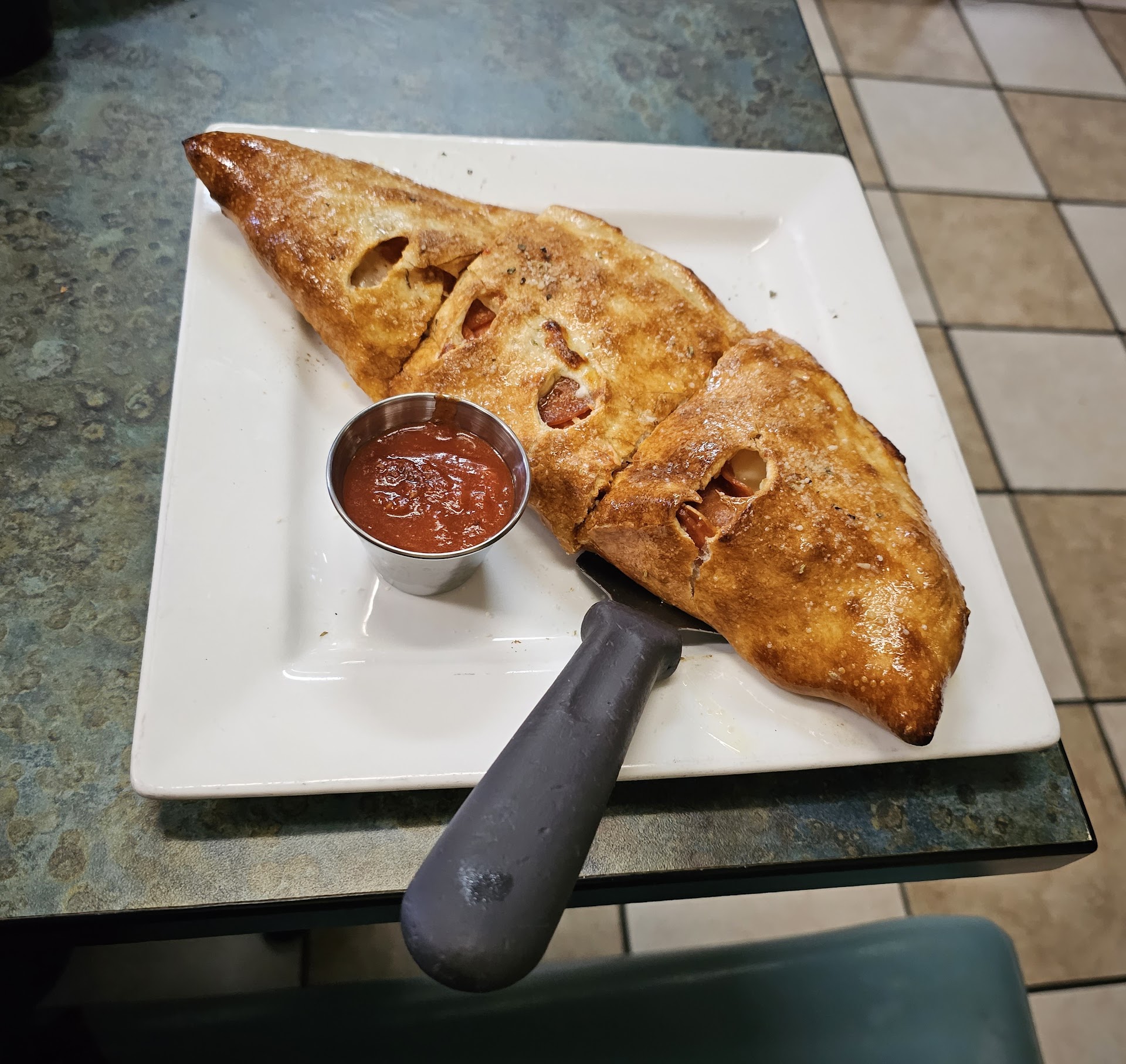 Group of three arrived for dine-in dinner. I had their calzone and it was spectacular.