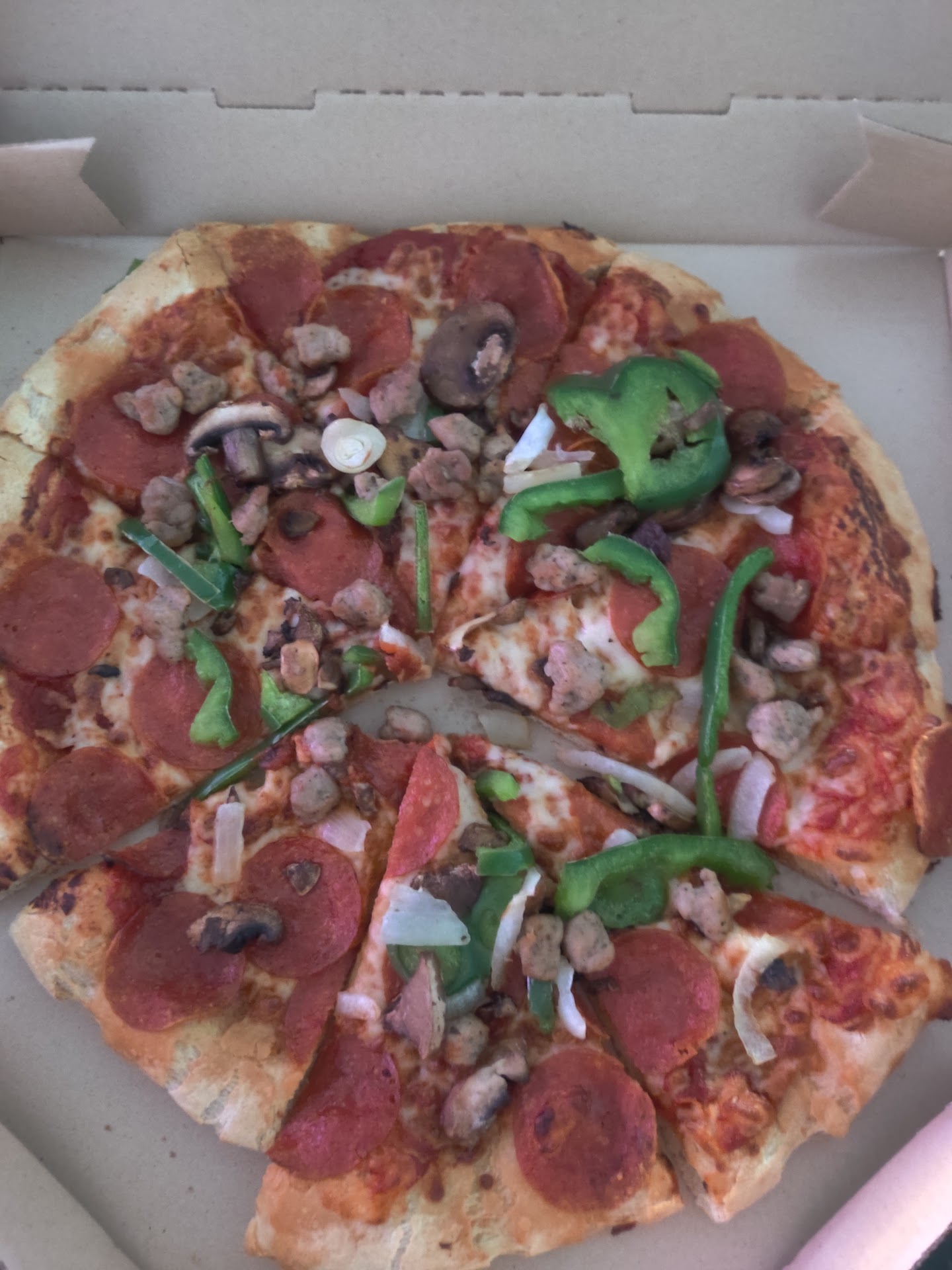 Read moreI did an online order for the Large Meatlover’s pizza special with added onions and green peppers with the pan crust, which cost extra. When I arrived home that was 25mins away, I realized that it was the hand tossed crust(which I don’t like) and the crust was a very very light color. Super strange being that I asked them to cook a couple minutes longer to get rid of that uncooked dough taste. Not the normal pizza at all! Totally disappointed! Called back to the store and was told that the cook was new and I could bring the whole pizza back with the receipt and they would remake it. I live 25mins away and stopped by after work, so the last thing I wanted to do was to go back out to exchange a nasty pizza! Only thing that I got was, I’m sorry.!No other resolution for this. I will never go back to this location. I chose this location, bypassing the Chester location where I was because I received good pizza in the past. Guess this is why you shouldn't waist your money eating out! This is the WORST pizza...
