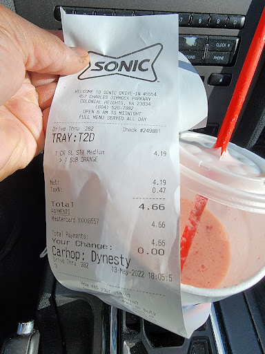Read moreDo not waste your time trying to eat here, if you even get served at all. I've seen more people drive away from this establishment after waiting than I do actually eating here. I moved to the area about 4 months ago and have been to this location about a dozen times. It wasn't so bad in June and July but the last couple months this establishment has gone downhill. It is clear the management does not care. They do not understand the meaning of "fast" in fast food. My average wait time in the drive through is 25-30 minutes for one meal on a good day. I have empathy for establishments understaffed right now trying their best, but this is not one of them. They do not understand taking orders and putting them out simultaneously. They will take a couple orders then get them out, then get to the next couple in line in the drive through. When I pulled up to the window 3 employees were just standing or sitting on the counters drinking a soda or on their phones. When handing me multiple items from the window they don't look at you leaving you to juggle and reach for everything. Not to mention today's visit was at 7:15pm and pitch black with none of their outdoor lights on. No napkins included. No telling if they will have the cheese dipping sauce for my favorite pretzel twist with cheese ever again. Once they told me they were out of the cheese sauce, another time I forgot to ask and they put honey mustard instead, and today I had to ask before pulling up to the window, then they revealed they didn't have it. At least the food they sometimes have is kinda warm some of the time. Today was my last effort. I'll take the drive to the Chester location if I really want Sonic. Always leaves my day worse than it was before. Hope the leadership can pull things together and inspire the employees to care a bit more, but I'm not...
