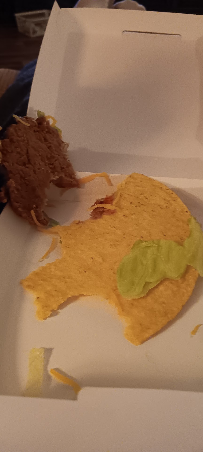 Ā Ā Ā Read moreMy family wanted Tacos for dinner so I thought id go to the taco bell. WORST DECISION today! I ordered the family pack and when I left the restaurant ...about three steps out the door the bottom of the box opened up -- there went my dinner all over the parking lot! I went back inside and asked the cashier if she noticed anything odd about my box and she went to the manager -- said something I couldnt hear and the manager brought me a bag......I was so aggravated ...and before I knew it I said "What do I need a bag for- the tacos are all over your parking lot." She then told me that wasnt what she was told. She had the nerve to ask me how I was holding the box..... again .... my mouth answered (by that time I was so amazed on the whole situation) wide open -- "what do you mean - the handles!" I was so over whelmed - so aggravated that all I could do is turn to my friend and tell her I had to go --- She was nice enough to wait on the remake -- and I went outside. I was told after I left that another manager was yelling at the crew about the box ..... but what good does that do???? Im not even sure I should feed them to my family..... Just think - I wanted a hamburger anyway!