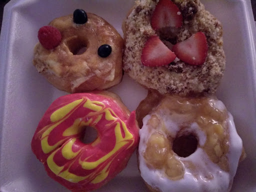 We showed up on a Thursday evening at around 8 and were the only ones there. The man behind the counter was not very chatty, but got the job done. He seemed a little glum for someone who works in a donut shop, but I guess any job can be a drag at times. Though we had the place to ourselves, by the time we were leaving, three customer groups showed up, so it seems we caught a lull.