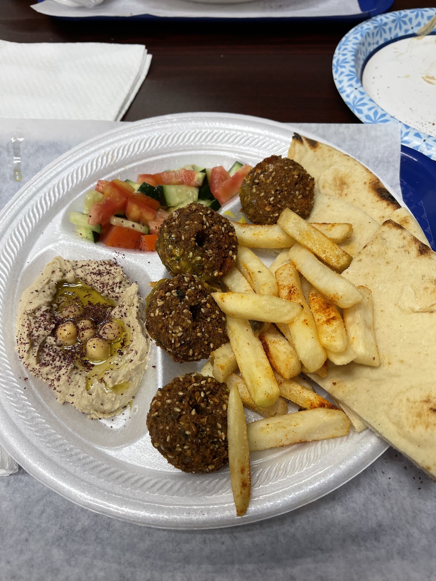 NOTHING WAS FRESH AT ALL. Hummus store bought. The falafel were ok but definitely not the hearts pictured in prior posts/ reviews.
