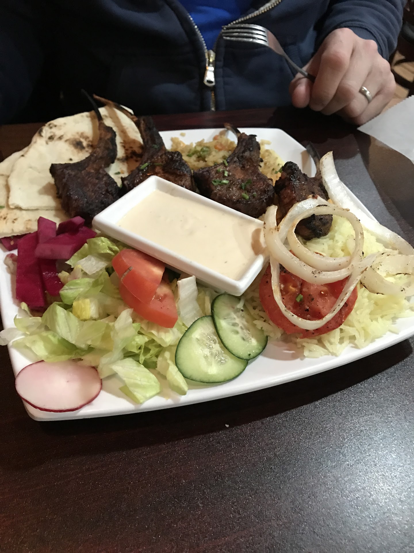 I ordered lamb plate....it was not lamb. I honestly don't know what it was. Husband ordered chicken shwarma..unseasoned chicken. Rice and Salad pre-made. Little saffron, rice reheated. Salad was turning old.