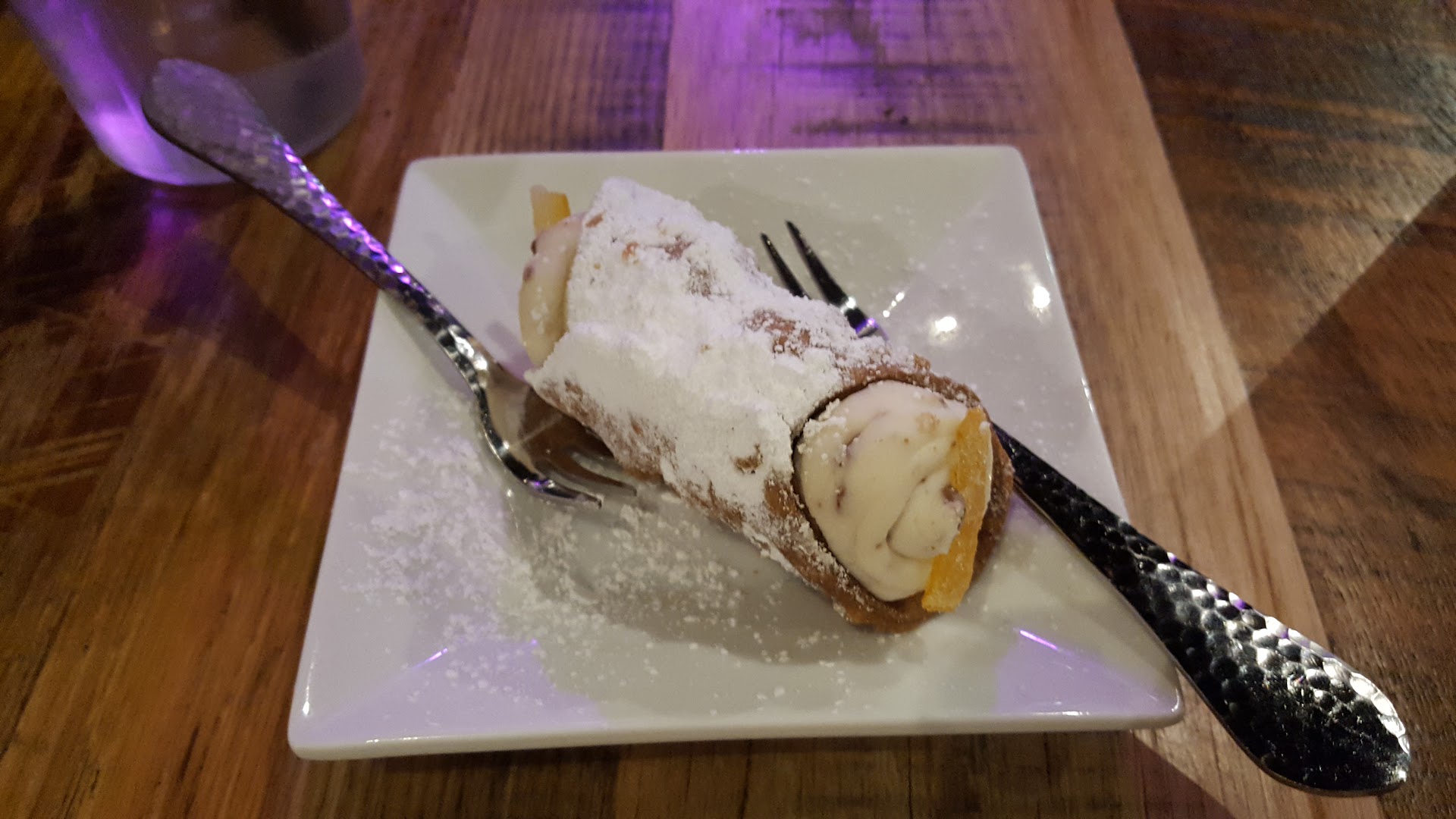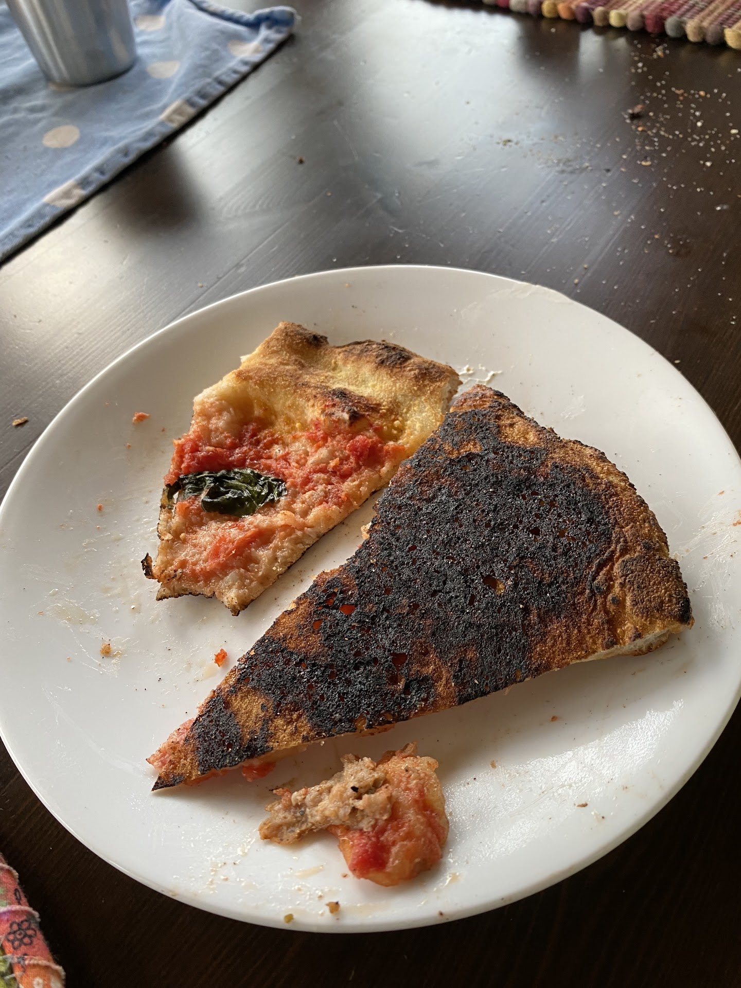 The margarita pizza tasted very good and we were happy with the crunchy outside and chewy inside of the crust. We also ordered one of the specialty pizzas that included the charcoal in the pizza dough. I did not love the texture of the crust - it definitely was not the same crispy/chewy texture of the normal dough. Definitely too dense, and a bit on the undercooked side. The not cooked enough part was probably because the pizza had way too many toppings on it. That seems ironic since they warn against choosing too many toppings on their menu, but this was one of their signature pizzas. I was looking forward to speck on the pizza, and the pizza did indeed have that topping. However, it was left in large pieces that were difficult to cut once they had crisped up in the oven. The pieces that were under other toppings did not crisp up at all so I felt like I was left with some undercooked and stringy pieces of speck.