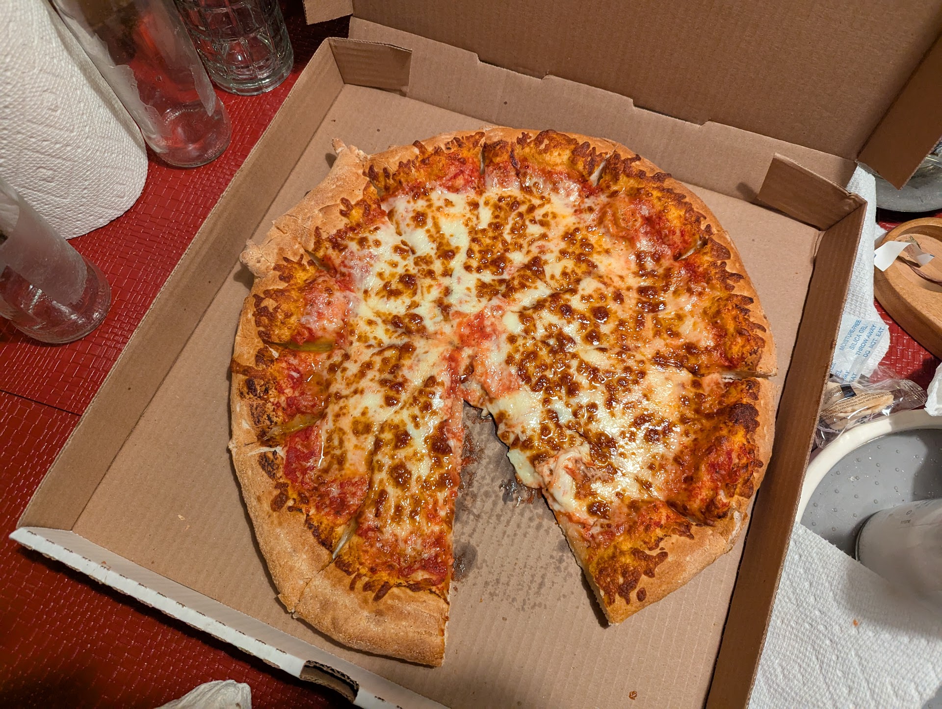 Wow! Is an understatement! The crust is what makes these so tasty! It’s the perfect consistency of fluffy, chewy, and a light crisp! Some of the best pizza and cheese sticks we’ve had in a long time! Finally a pizza delivery place that doesn’t skimp on toppings as you can see.