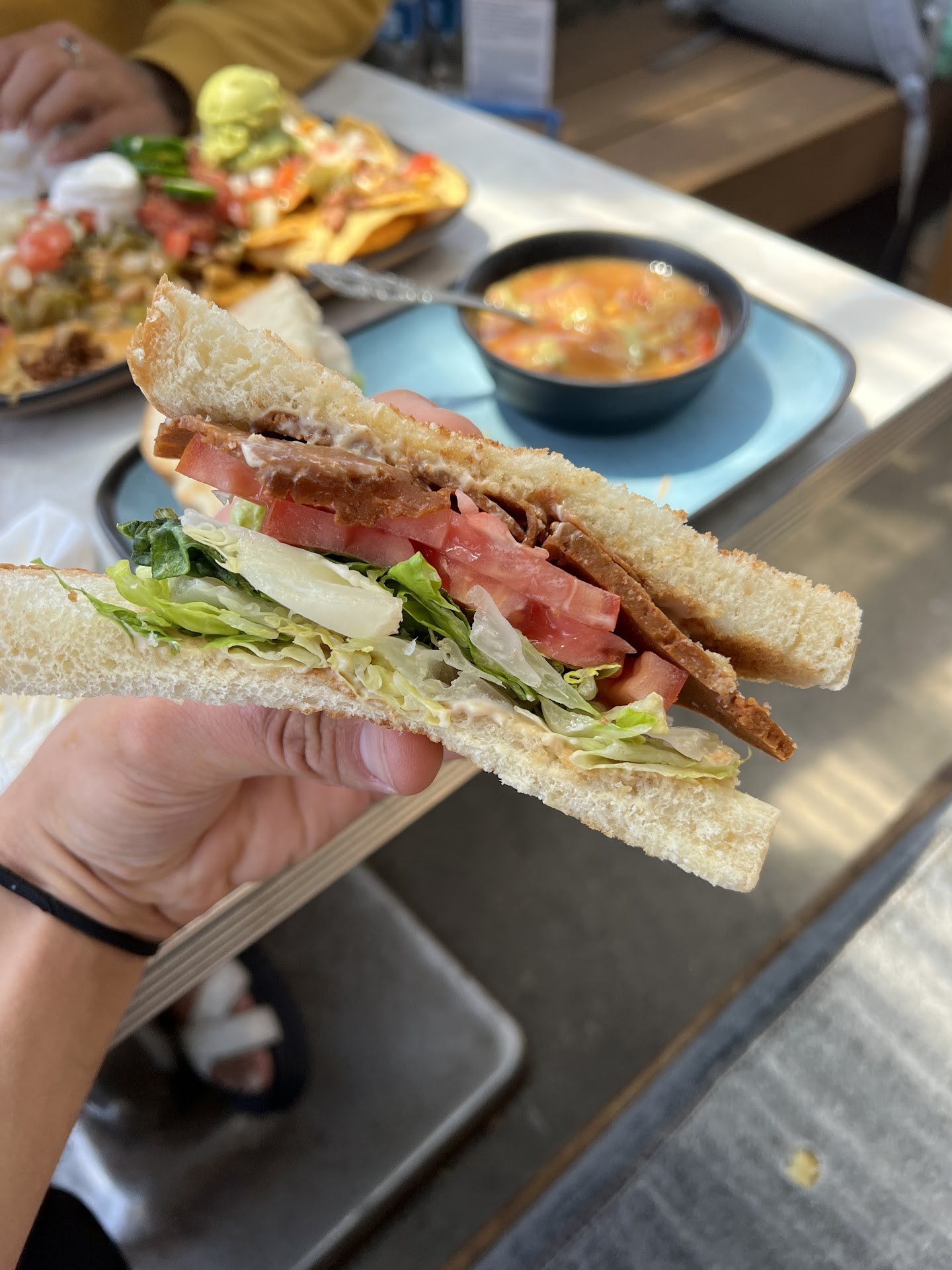 I tried the bread spreads and the chicken bacon ranch tacos. Everything was really tasty. I jokingly said it what Taco Bell would taste like if it was a sit down restaurant. This is a compliment because I am autistic and have a limited pallet. I can be very picky and have difficulty trying new things and I really did love the tacos. And the way they made it I didnāt once have the feeling āthis would be better if it had real meat on itā and Iāve had that feeling with a LOT of vegetarian food.