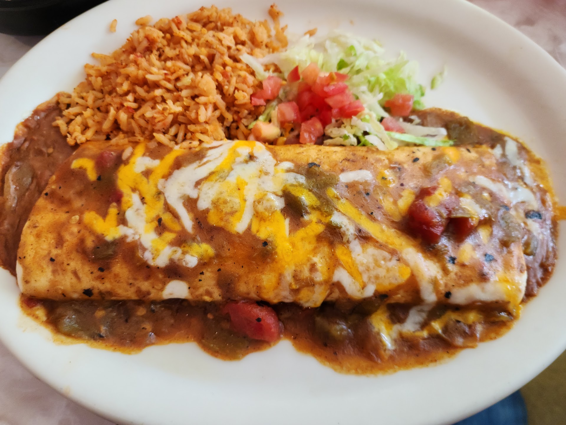 Read moreI have no clue how this place has so many 5 star reviews. To say the least, this place is terrible. Went there first time to this place with my son. We got told it would be a 30 minute wait. I didn’t mind as much due to the fact that it was a new restaurant. Luckily for us we got in about 5 minutes. For the chips and salsa they bring you , there kinda meh. Salsas to spicy for my taste and the chips where ok. I got a margarita flight to drink. The watermelon one was bad but the other ones I got where strawberry, pineapple and the original. These where not terrible. But they where not amazing.I went ahead and ordered the Boom Chica Boom Boom to find it extremely dry. The rice was to spicy for my personal taste. But I understand that people like that just like salsa. The beans are to mushy and have to much seasoning and my son said he had almost no seasoning. I asked how his steak burrito was and he agreed that his rice was dry. He had gotten his burrito smothered in queso and he told me the queso was nothing to right home about. He also said that the burrito lacked cheese and the steak had little seasoning. I came a 2nd time because my wife, daughter and mother in law wanted to try it. Again, we where told a 30-35 minute wait and we waited an hour. My mother in law has a bad hip and it’s not comfortable for her stand. This place lacks seating for people. There’s some but people where using it. Which I can’t really get mad at restaurant at because people will no longer offer there seats to a pregnant woman or elder person anymore. But still there there’s like 3 benches that hold maybe 4-6 people.Nevertheless we finally got to sit down and my wife and I got swirl margaritas which where meh as well. Finally got to eating are dinner to find the same issues as last time. Dry tortillas, dry rice, mushy and over seasoned beans. And the food just being over all bad. I strongly recommend that you avoid this place in general and go to Fuzzy’s taco shop. Heck Taco Bell is better...