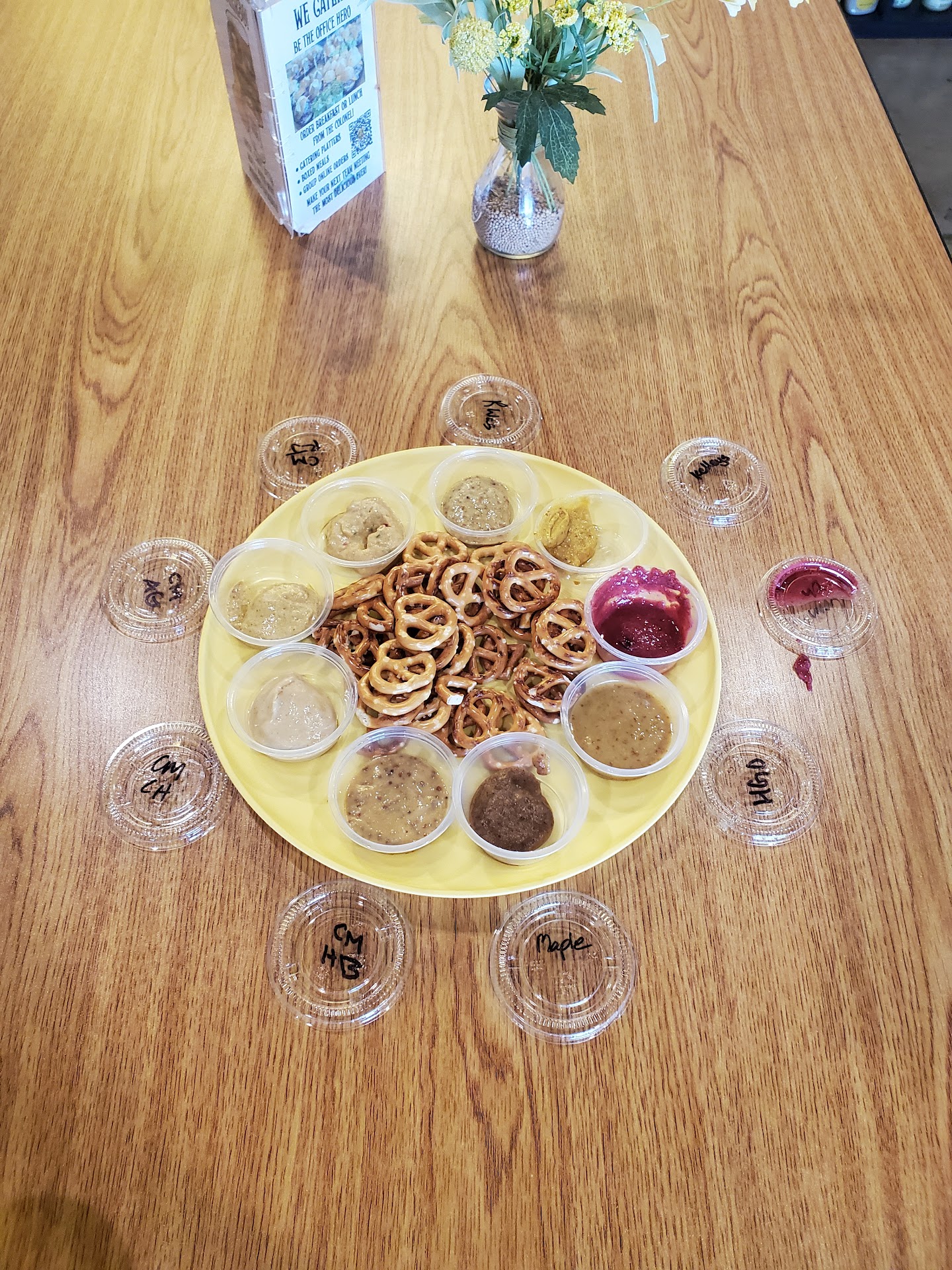 Read moreColonel Mustard's Sandwich Emporium might not seem impressive - or even open - when you pull into the parking lot. It's located in a little strip mall, and when we arrived, the blinds were closed. My mom genuinely thought the place was closed. However, as soon as we opened the door, the rich atmosphere of this sandwich shop hit us like a wall! Many customers already sat at their tables, chowing down. The walls are painted a nice yellow - not a yellow color that induces unpleasant feelings by any means. In a corner is a massive display of 100+ mustards, all available for purchase. Another corner boasts a fridge with various deserts that appear to be homemade (judging by the unlabeled packaging) - including mini cakes, pies, and other honey-enhanced treats. A large bread storage container sits next to the fridge, below the wall menu. I always enjoy when the food ingredients are out where they customers can see them - it forces a certain quality of hygiene on the business. The writing on the menu was small and hard to read. I took out my phone, zoomed in, and was fine. They had some business merch up on the wall - shirts, sweaters, etc. The line was to the door (4 people ahead of us), but the food was well worth the wait. It took them a hot minute, but since the kitchen is right in plain sight, I could see they were constantly busy preparing food before us until they prepared our food. I gave 4 stars for service because we still waited around 10 minutes for our 4 subs. Honestly, they seemed understaffed - one more kitchen employee would have effectively shortened our wait time.