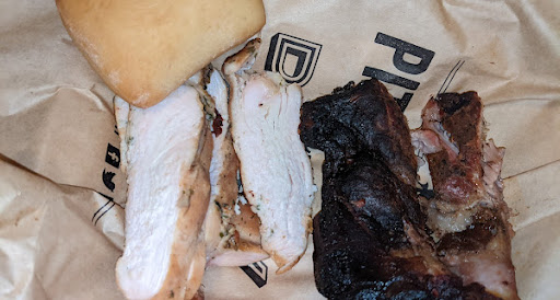 Read moreAte here for the first time last night. Placed an order online for two 2-meat plates. Here's what I ordered: Plate #1: Two-meat plate, sliced brisket, polska kilbasa, green beans, salad (comes with 'texas toast'). What I got - chopped brisket, jalapeno cheddar sausage, green beans, salad, sauce on the side (didn't ask for sauce on the side), cold, tasteless potato-type roll. Plate #2: Two-meat plate, sliced brisket, jalapeno cheddar sausage, green beans, mac n cheese, sauce on the side, side of cheddar cheese. I got all of that except the brisket again seems chopped not sliced, but whatever. And again no texas toast; a cold, tasteless potato-type roll instead. The "cheddar cheese" slice was a kraft single in a container half melted and inedible. I threw it away. The sauce on the side was one tiny container that didn't even cover the meat. The mac n cheese has absolutely no seasoning on it whatsoever. Bland as can be. My other complaint is that they have all these great coupons in the mailer and nowhere to put the coupon on the website when you order (there's a code area but no code on the paper coupon). Also, no way to pay at the store when doing an online order to present said coupon, so the only way to use it is to go in, order in person, wait. No thanks. I really hate leaving reviews like this but I don't understand how it's so hard to follow basic instructions. I will not be eating here again or at any other of their chains. The jalapeno cheddar sausage and green beans were good, the only reason I didn't...