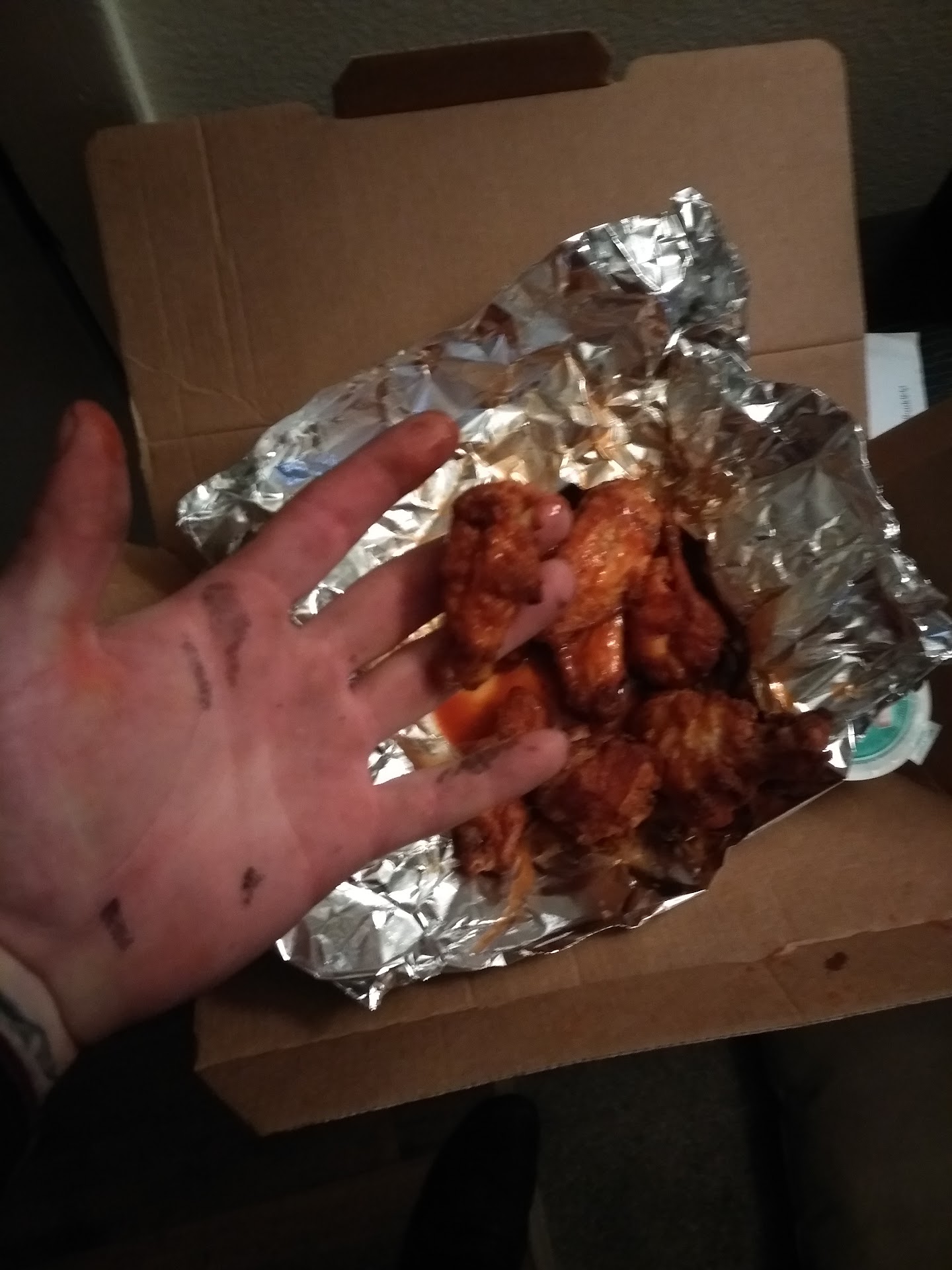 Read moreThese are the wings I just had delivered. That's what counts for wings at Domino's apparently. One of them isn't even a wing it's the top end piece that nobody eats because there isn't anything on there to eat. So now I'm driving back in the snow tonight to get my corrected order because they can't seem to get their stuff together. As much food as I order from this place, I will go out of my way to not use this store.
