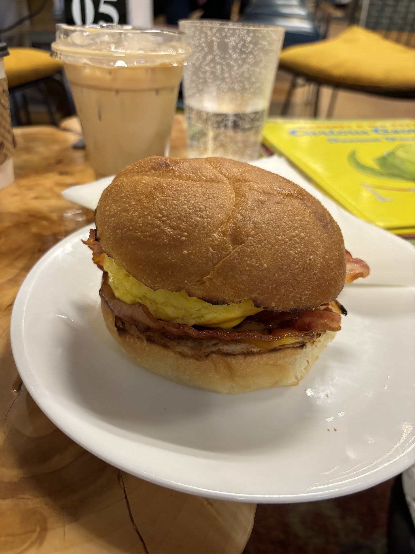 Brought my two kiddos with me today and we took over the front area to the left when you walk in. Lots of things to explore as far as books and games. My older son got a bagel and cream cheese and a steamed milk with hot chocolate. Barista put kids temp on there and I appreciate that! I got a black walnut iced latte with the dark roast and it was equally as good as the blueberry one! Got The Babe breakfast sandwich this morning and it was good and filling. I appreciate that they have high chairs available! Also almost unheard of with other coffee shops. I even think there was a changing pad in one of the bathrooms if I remember correctly. Didn’t use it this morning, though!