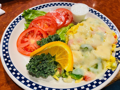 Ordered coffee and orange juice. It took 10 minutes to arrive, and once it did, waitress stopped at an empty table, put the tray with our drinks on the empty table, then put her hands on her hips and talked to another waitress about stuff not related to our order. She was 3 feet away with our drinks, which we had already waited 10 minutes for, but would not deliver until I caught the eye of the other waitress and put my hands up as if to say "What the heck?" This caused the other waitress to come to her senses and walk away, prompting our waitress to FINALLY deliver the drinks. She said she brought "kid orange juice" for the 2 children with us. Not getting what the difference was, I asked if that meant they got less. She said, in an abrupt arrogant tone "It MEANS they get it for FREE". Well, nice, but can you say it with kindness? I called her out and told her the tone was not needed. We ordered, ate, and got 1 coffee refill (cups are small). We served ourselves coffee refills a few times, which I would rather not do. As I was leaving with 2 "to go" boxes (PLEASE consider green boxes and stop using Styrofoam) I asked another person behind counter for a bag to carry boxes in as we were walking. She said yes, did a few more things, got the bag in her hands, and starting talking to another staff member...yak, yak, yak. Meanwhile, rest of my party is outside waiting for me. I said "Can you interrupt your convo long enough to hand me the bag?" Good grief, were they all high? What caused so much distraction? Why was talking to a colleague more important than taking care of paying and tipping customers? I see other reviews mentioning service. Owners, please consider some...