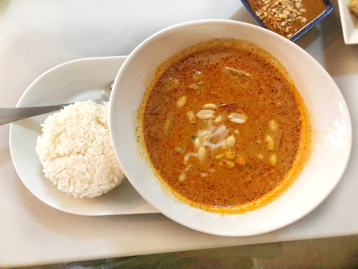 Now let’s talk about the food—absolutely incredible! Everything I’ve tried has been fresh, flavorful, and beautifully presented. I highly recommend starting with the chicken satay. The meat is tender and juicy, and the peanut sauce is rich and delicious. For a main course, the panang curry is a standout. It has the perfect amount of spice, and the creamy coconut flavor is perfectly balanced with fresh veggies and your choice of protein.
