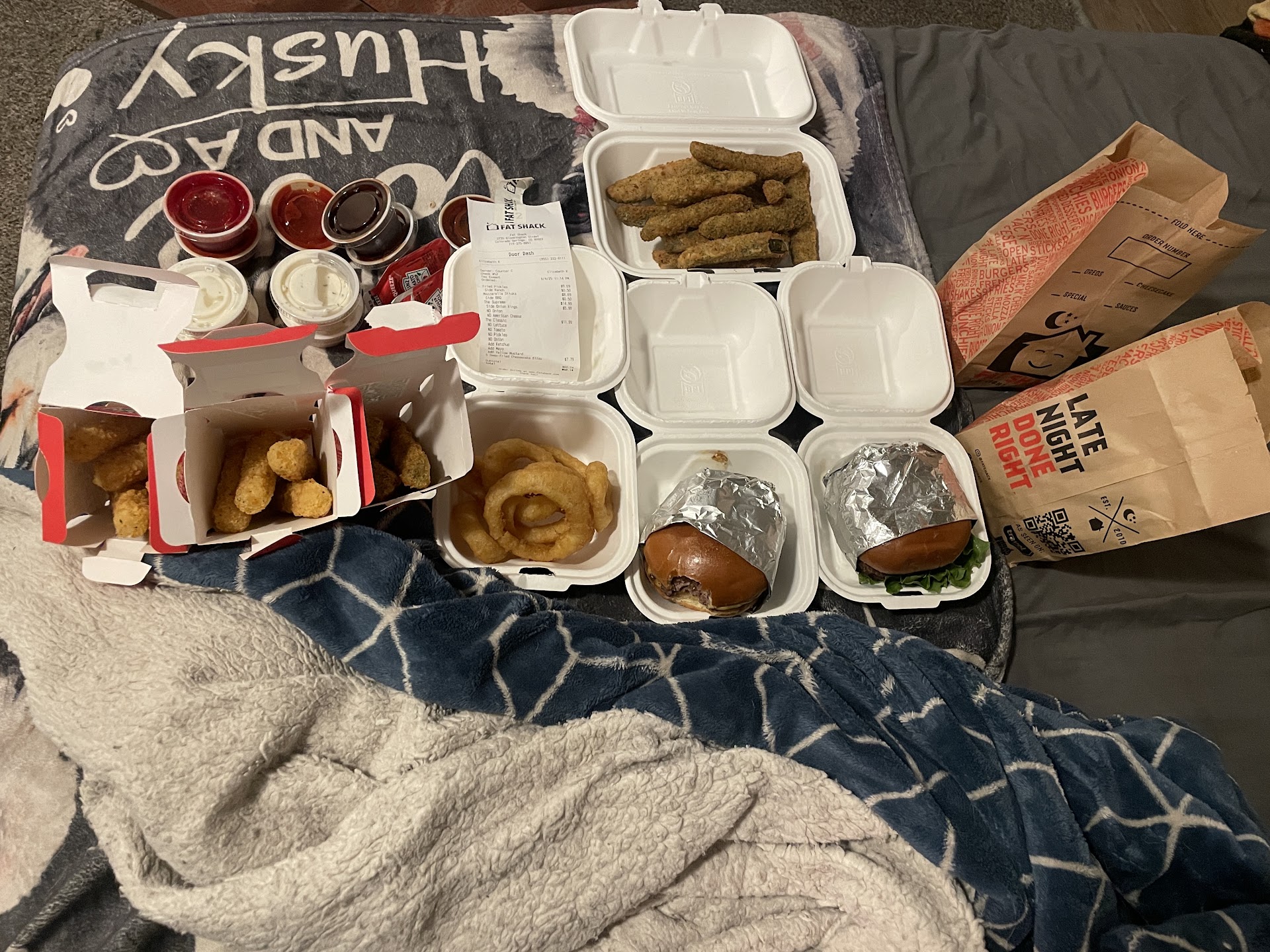 Where was this place when I was in college? Man alive, the combos of sandwiches you can get from Fat Shack are delish. I ordered through Postmates so canāt speak to the physical location, but my delivery was great. I ordered the Doobie, Jersey, and Mack along with fried Twinkie, fried Oreos, and fried cheesecake bites. I have a decent size appetite that tends to be well above the average person. And my body size pretty well confirms that statement š But of all I ordered, I was only able to eat the Doobie and half of the Mack, along with the Twinkie, and one each of the Oreo and cheesecake bites. The sandwiches when you unroll them donāt appear to be huge, but then you bite in and really think about what your eating in each sandwich with the chicken fingers, cheesesteak, fries, mozzarellla sticks, Mack and cheese, onion rings, etc. and a small 6ā sandwich like what I ordered can go a long way! Normally I order the biggest sandwich size a place has, but the food Angel on my shoulder today said go smaller and order more variety and man, Iām glad I did. Cuz these things pack a punch! And I was ready for a nap as if it was Thanksgiving and I had just knocked out my 3rd or 4th plate⦠and a nap was most definitely had today š Overall, the food was great! The flavor combos in the sandwiches all worked well and nothing of what I ate so far had anything that overpowered anything else. Everything was good and balanced. The fried desserts are heavenly. And huge! I order the 5 piece orders of the Oreos and cheesecake bites thinking the size of an Oreo with a little batter the fried. No, these things each come out the size of like racquetballs, coated in a delicious cake like batter, then dusted in a powdered sugar. So I have dessert for the next week! I will say for the Twinkie, the sponge cake of the Twinkie and the batter Fat Shack uses for frying end up so close to one another in taste that the Twinkie taste kinda gets lost. Or it did for me at least. That was the one down of it for me, but no regrets in trying it at all cuz I can at least say that I have now, though letās keep that from my doctors, shall we š So when you are looking for some unique combos or just pure indulgence, look no further than Fat Shack. This fat...