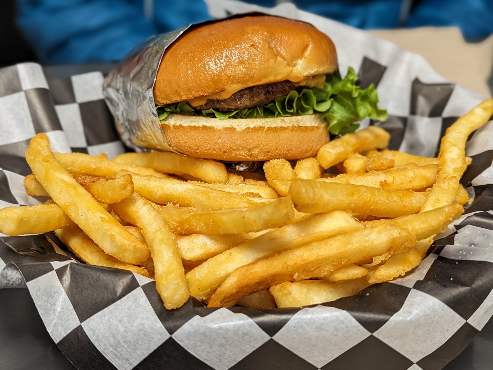 The cheeseburger included american cheese, lettuce, tomato, onion, pickles and burger sauce on a toasted brioche bun. I was served with a side of delicious fries. The burger was average, nothing great yet not horrible, but enough to hit the spot.