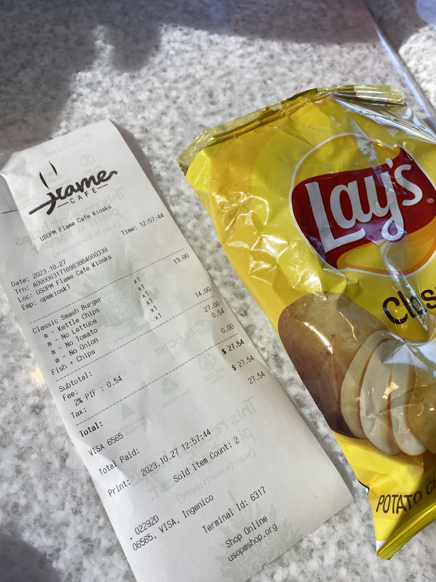 Read morePaid for Boulder Canyon kettle chips, but got plain Lay’s potato chips. Had I known that I would have spent the extra $1 for fries. Burger was good, but the bun was burnt. My husband got the fish and chips and said 1 piece was so rubbery he could hardly eat it. Definitely not worth the money! Staff made me get my own glasses of water, even though they are behind the check out stand. As you can see, the atmosphere and view of the mountains is...